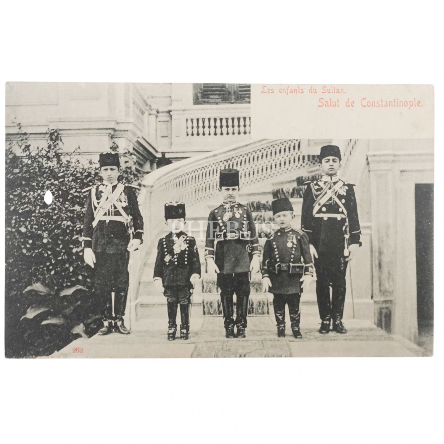 Yıldız Sarayı önünde Sultan İkinci Abdülhamid´in şehzadeleri, "Les enfants du Sultan - Salut de Constantinople", 14x9 cm...