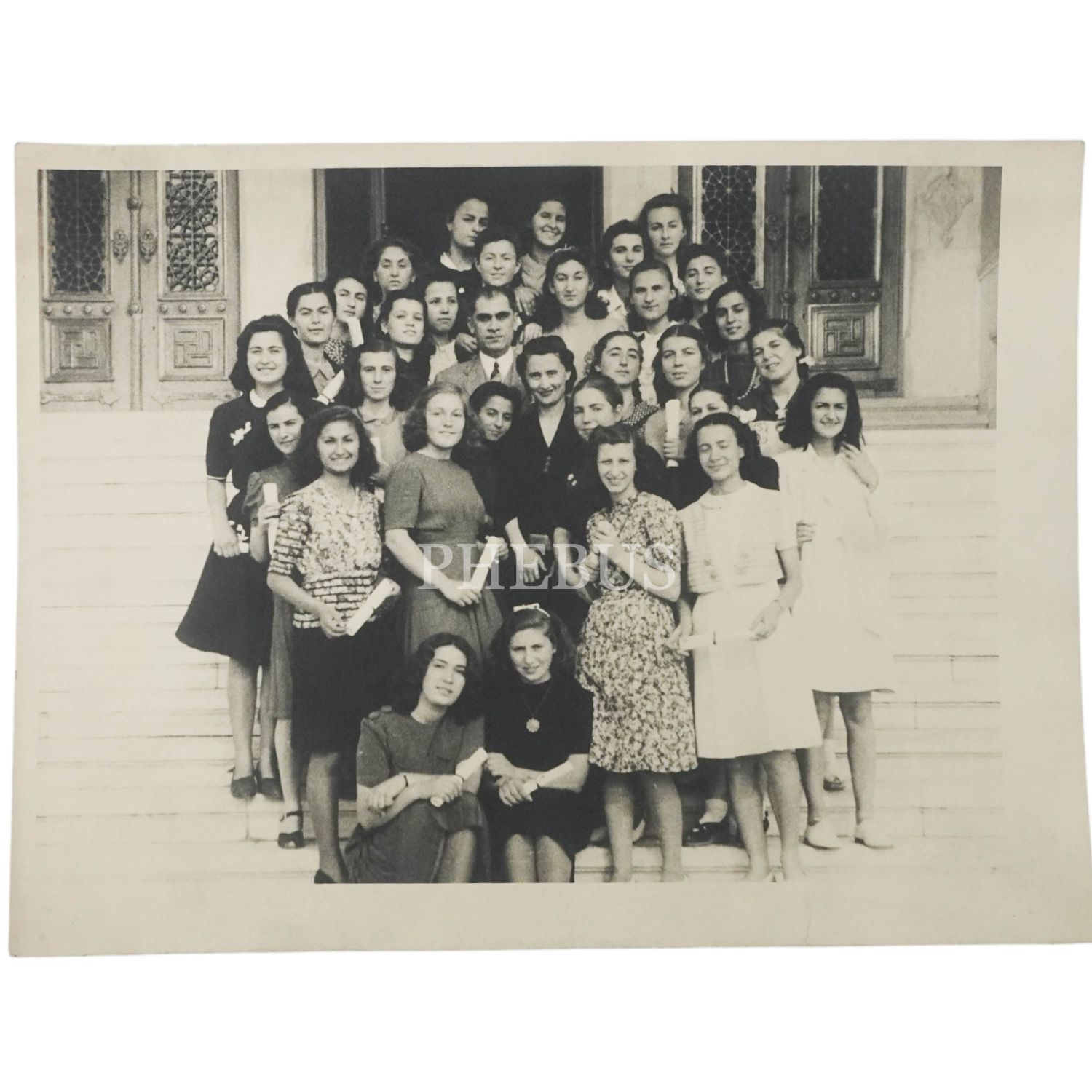 Hasan Âli Yücel, diplomalarını almış kız öğrencilerin arasında, 24x18 cm...