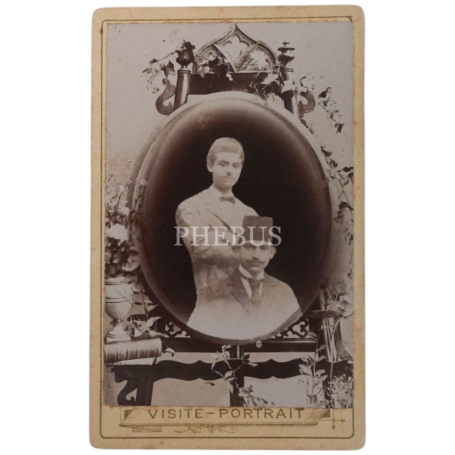 İki genç arkadaşın özel bir mizanpajla hazırlanmış CDV (kartvizit) boy hatıra fotoğrafı, 7x11 cm...