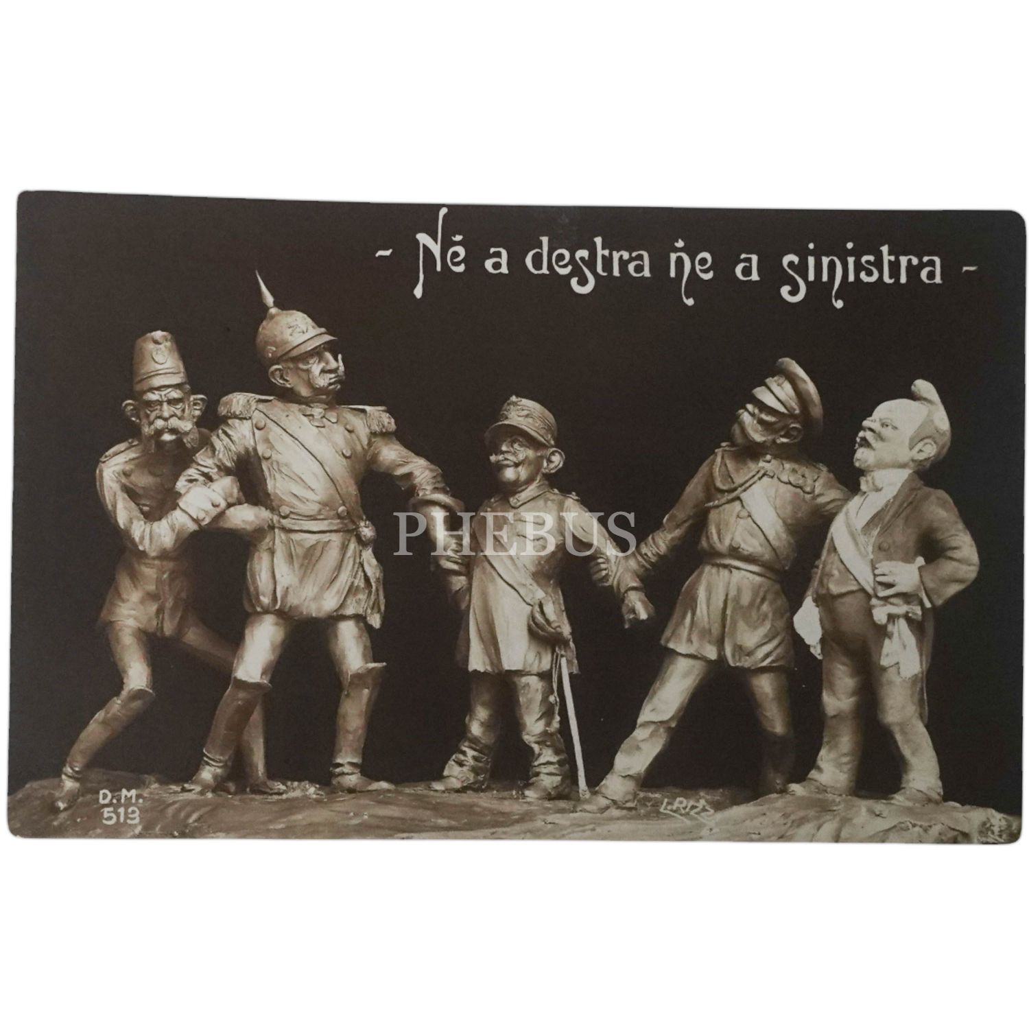 Cihan Harbi yıllarından, İttifak ve İtilaf devletlerinin kendi saflarına çekmeye çalıştığı İtalya´nın, her iki gruba olan kayıtsızlığının vurgulandığı propaganda kartpostalı, 14x9 cm...