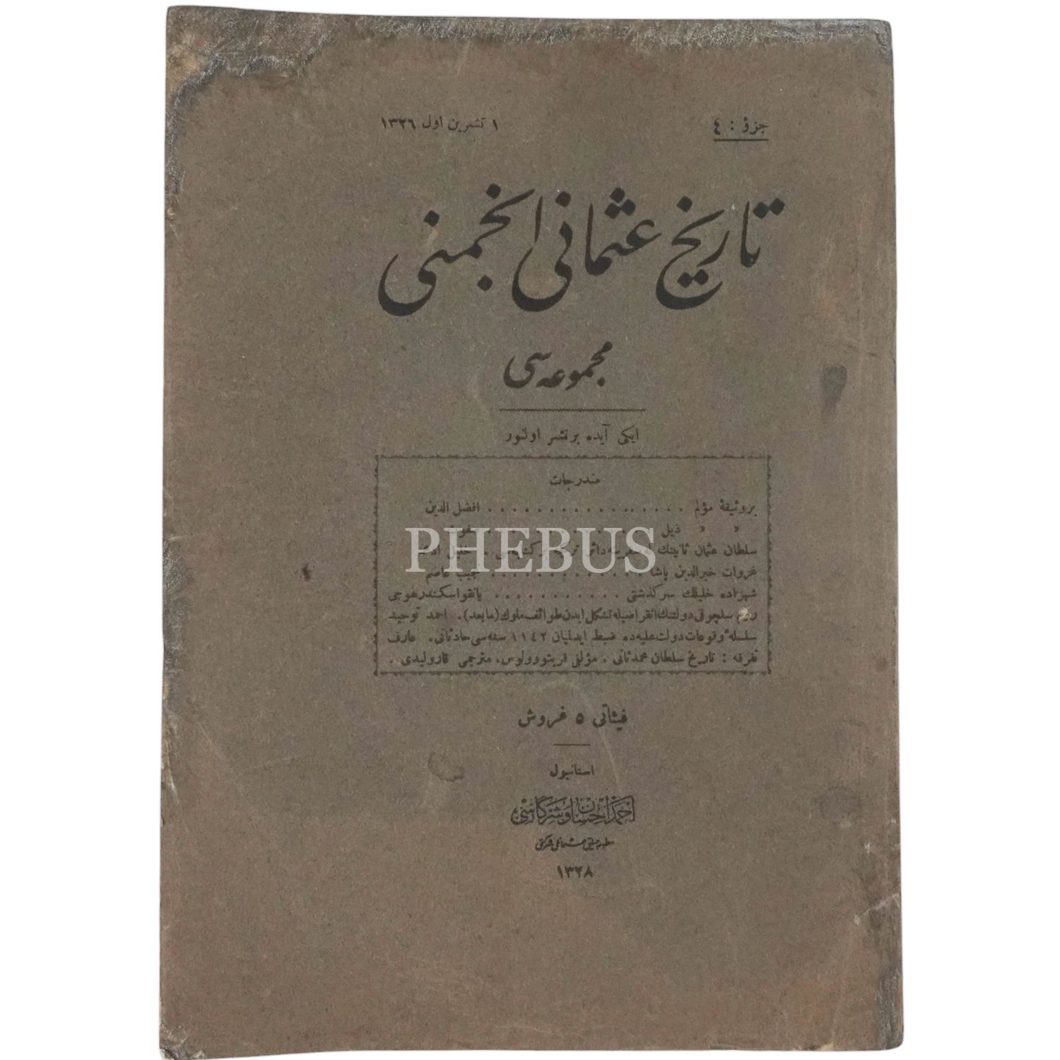 TARİH-İ OSMANİ ENCÜMENİ MECMUASI´nın 1Teşrinievvel 1326 tarihli 4. sayısı, 18x26 cm...