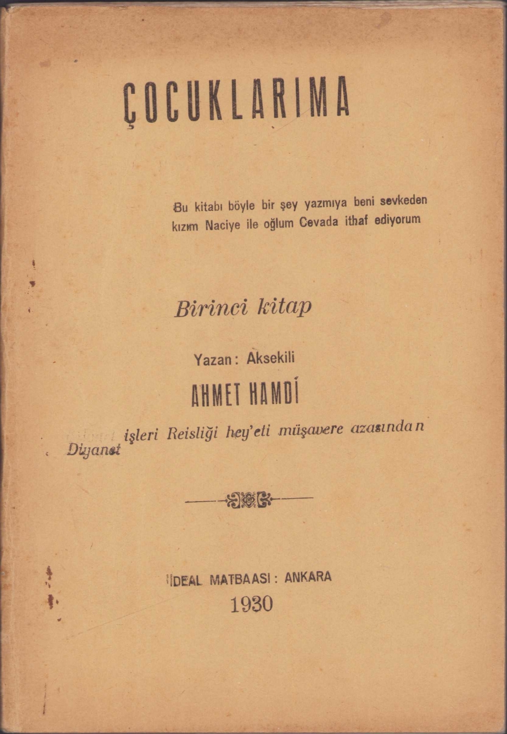 Çocuklarıma - birinci kitap, Ahmet Hamdi, İdeal Matbaası, Ankara, 1930, yazarından imzalı ithaflı, 102 sayfa, 13x19 cm