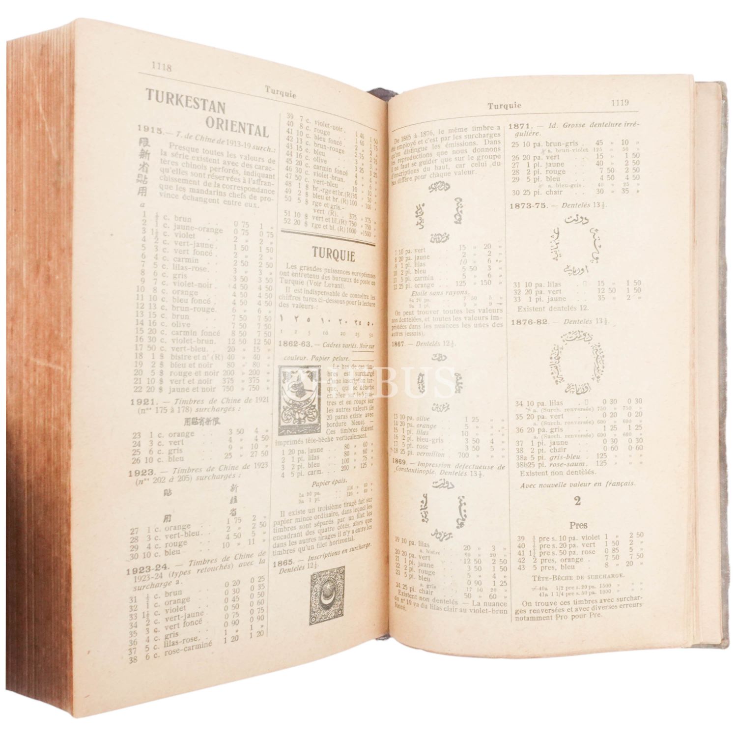 Osmanlı pullarını da içeren dünya pulları kataloğu... Smyrne (İzmir) damgalı...