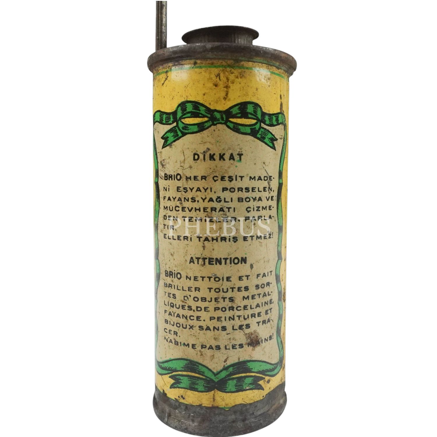 "Dikkat - BRIO her çeşit madenî eşyayı, porselen, fayans, yağlı boya ve mücevheratı çizmeden temizler, parlatır. Elleri tahriş etmez!"