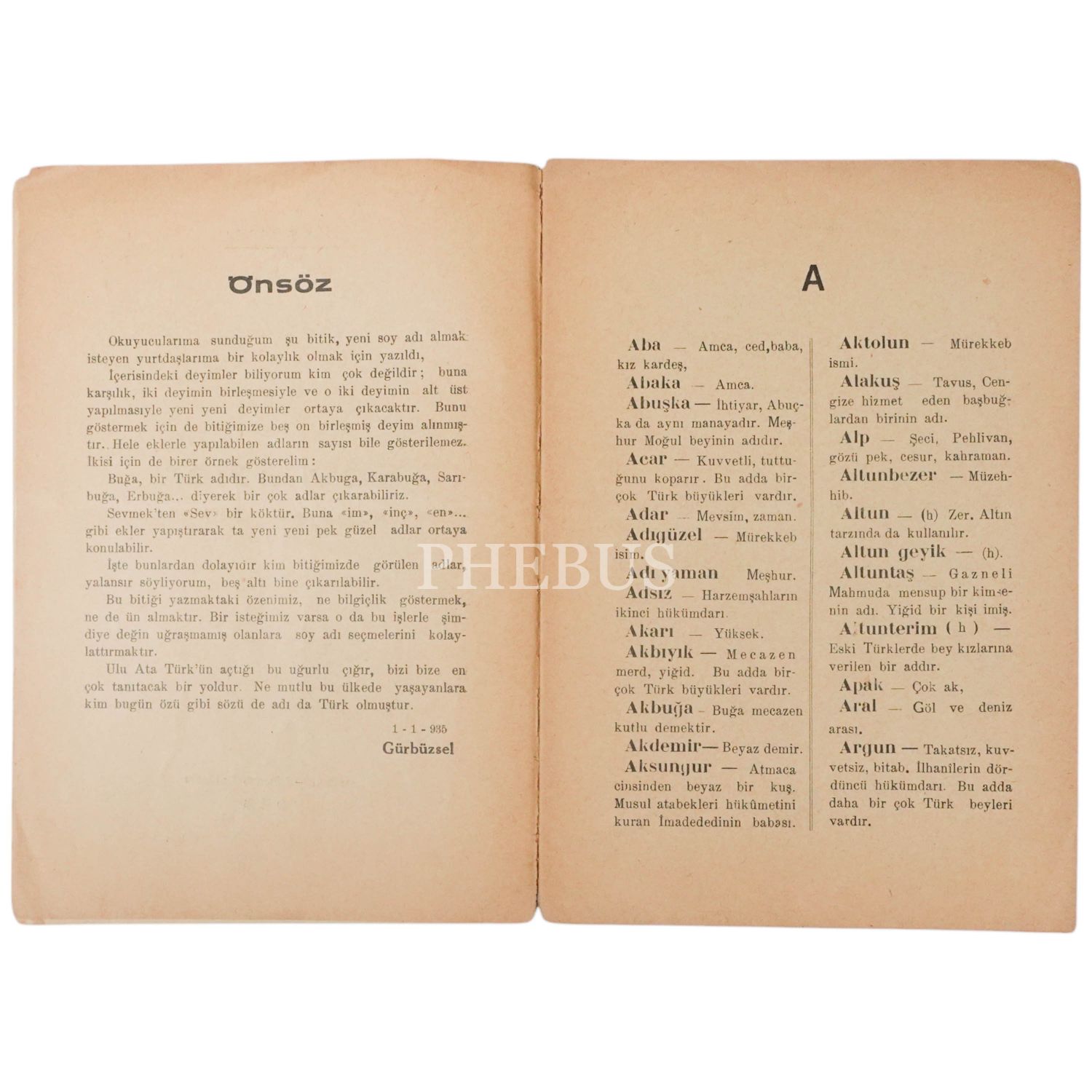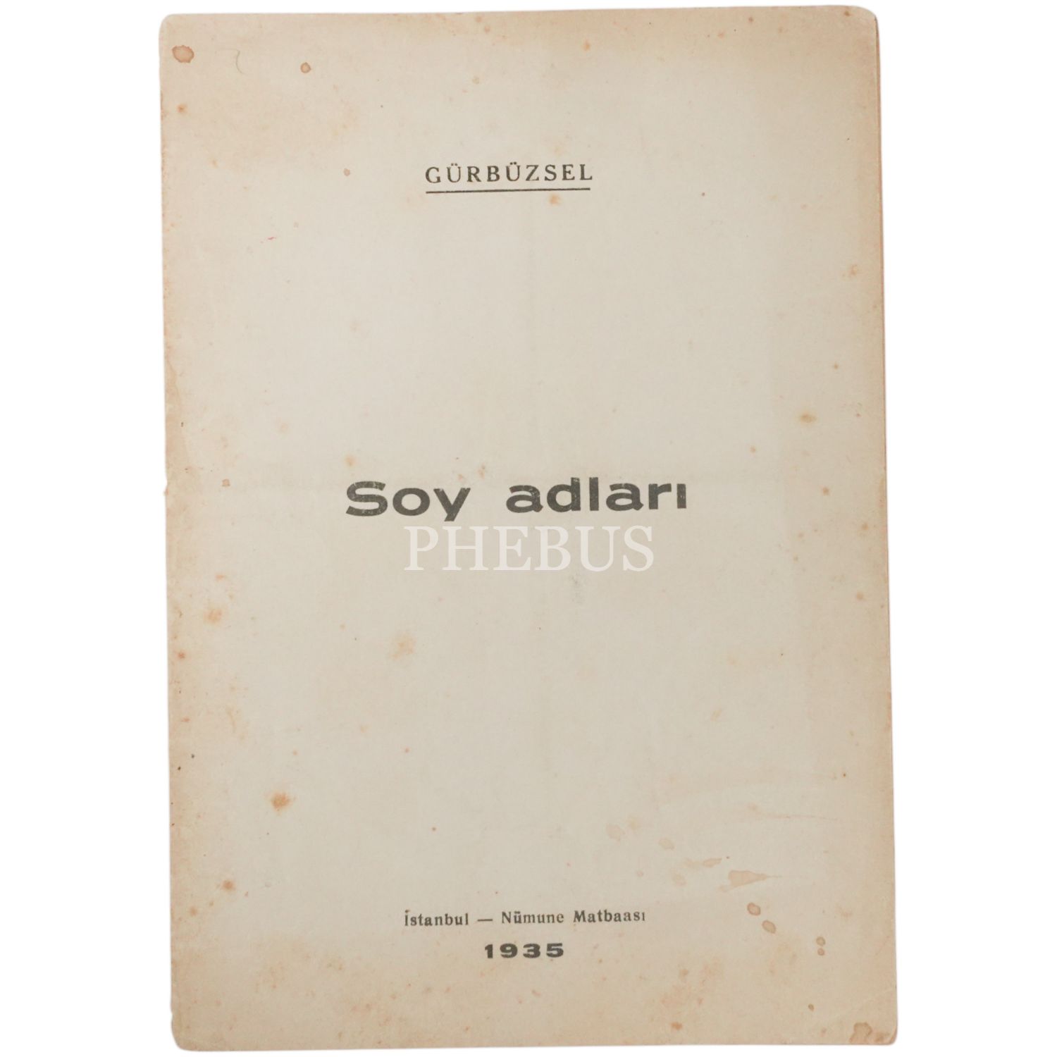 SOY ADLARI, Gürbüzsel, 1935, Nümune Matbaası, 24 sayfa, 14x20 cm...