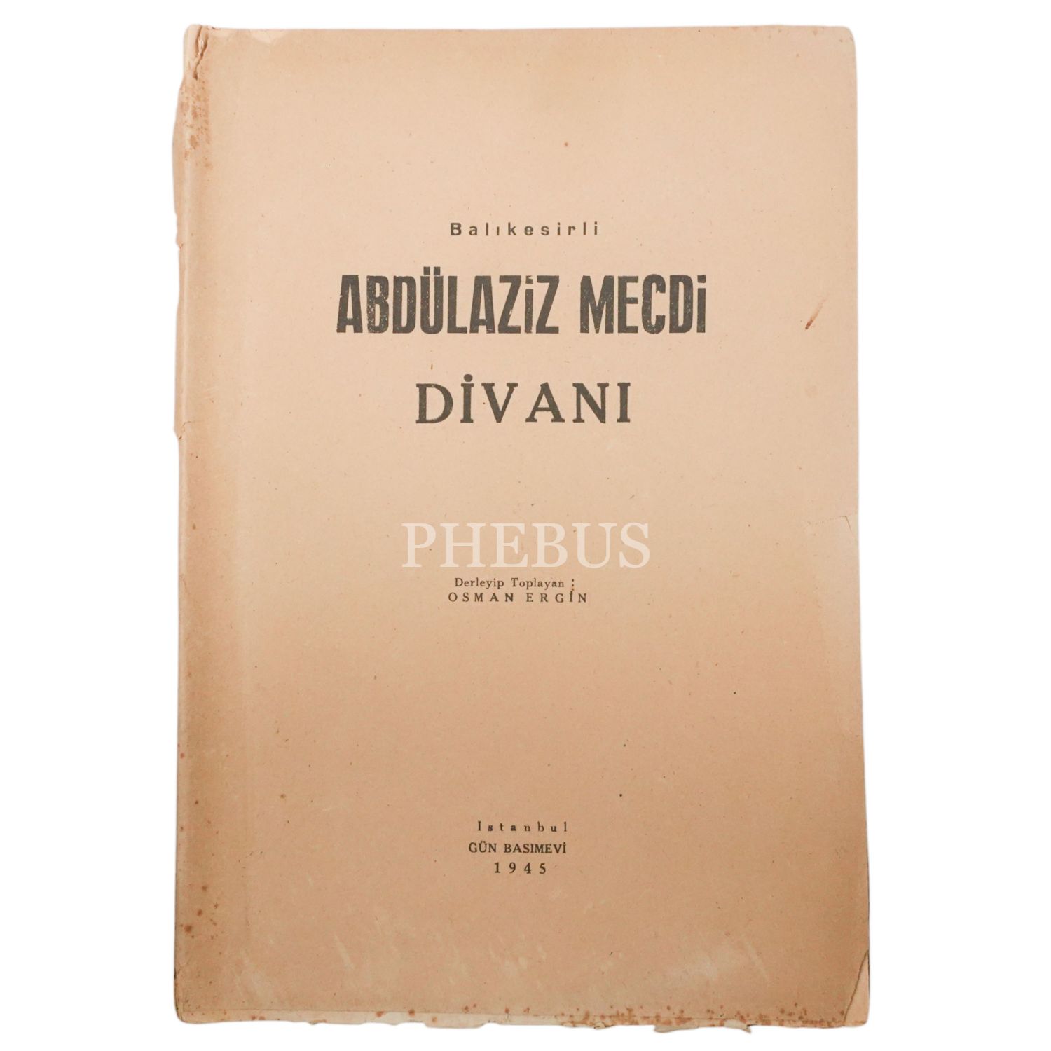 BALIKESİRLİ ABDÜLAZİZ MECDİ DİVANI, (derleyip toplayan: Osman Ergin), 1945, Gün Basımevi, 156 sayfa, 18x25 cm...