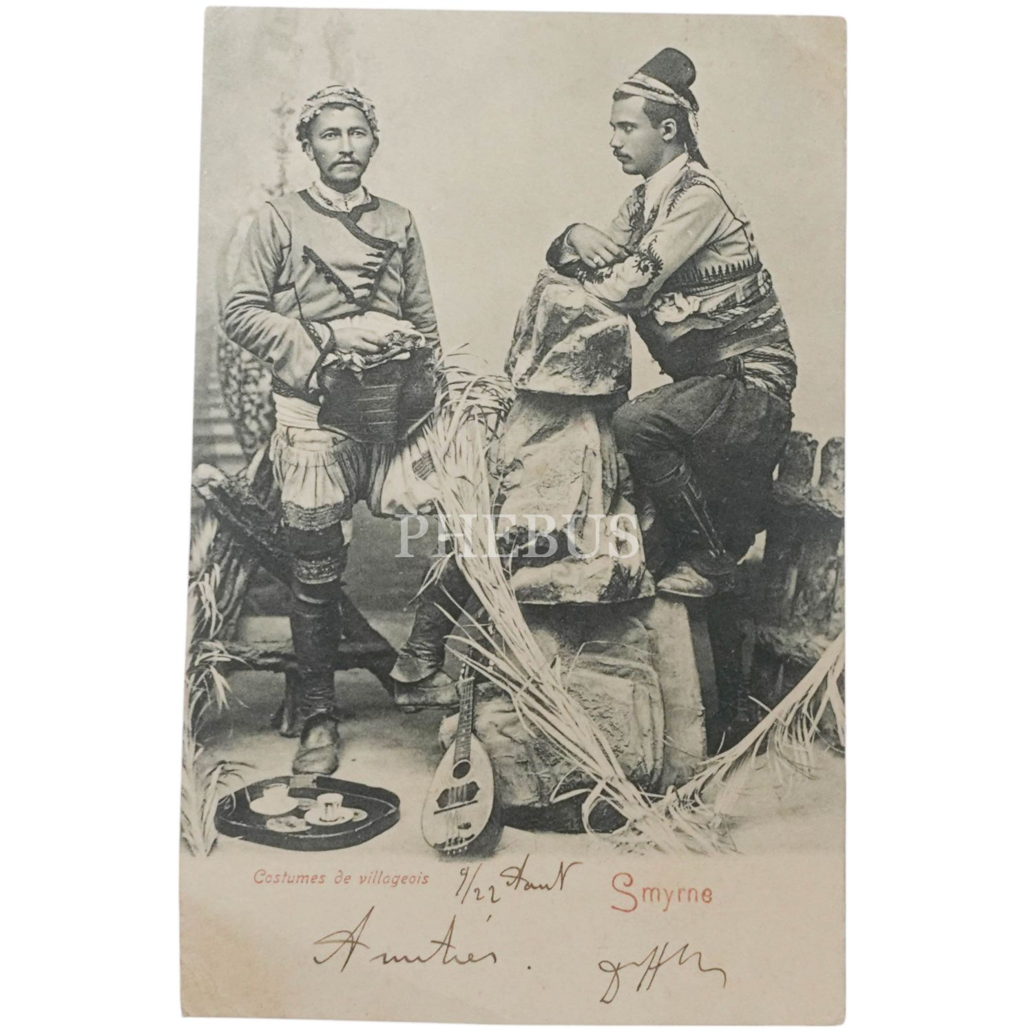 İzmir ve civarından köylü kostümleri, "Smyrne - Costumes de villageois", 9x14 cm...