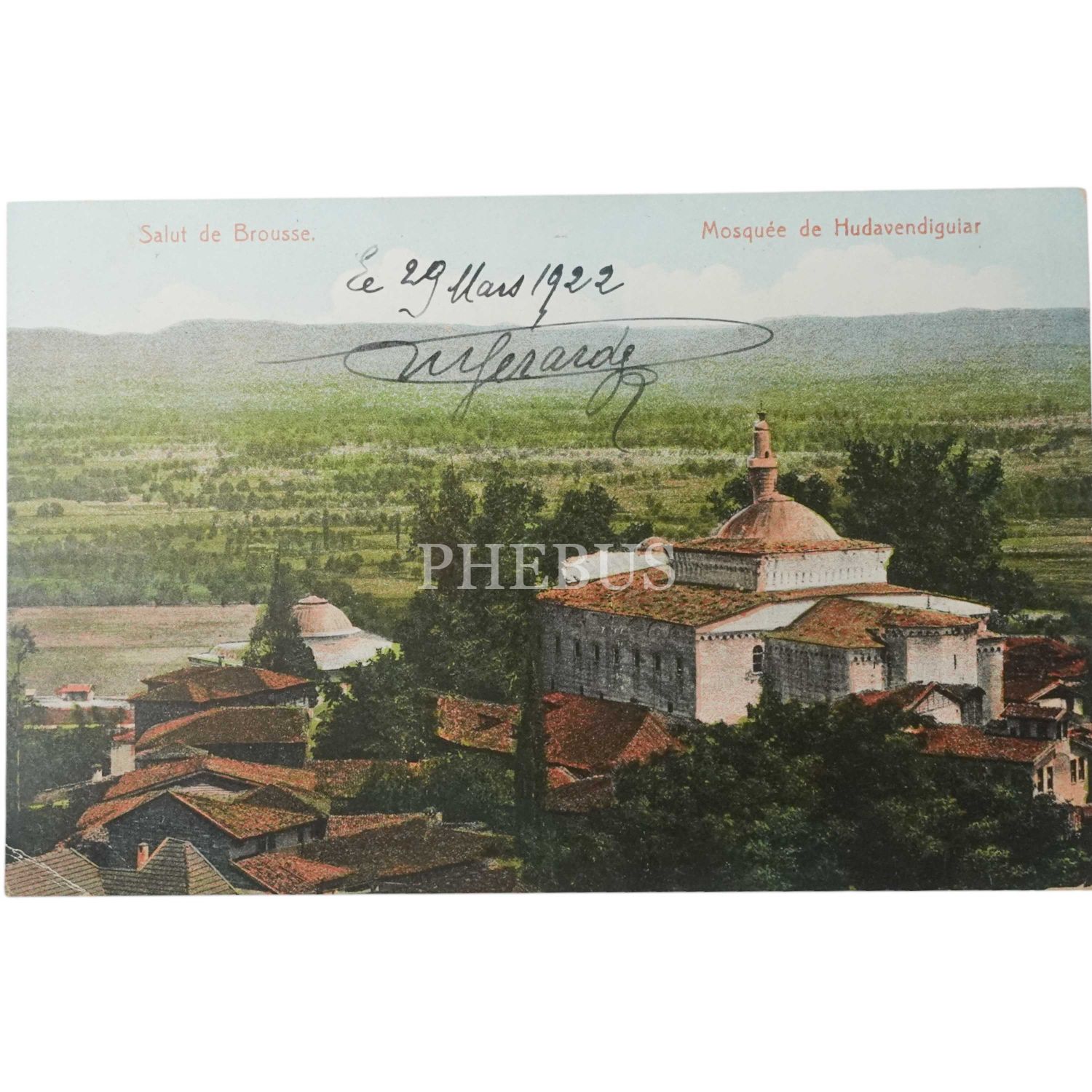 Bursa - Hüdavendigar Camii, "Salut de Brousse - Mosquee de Hudavendiguiar", 14x9 cm...