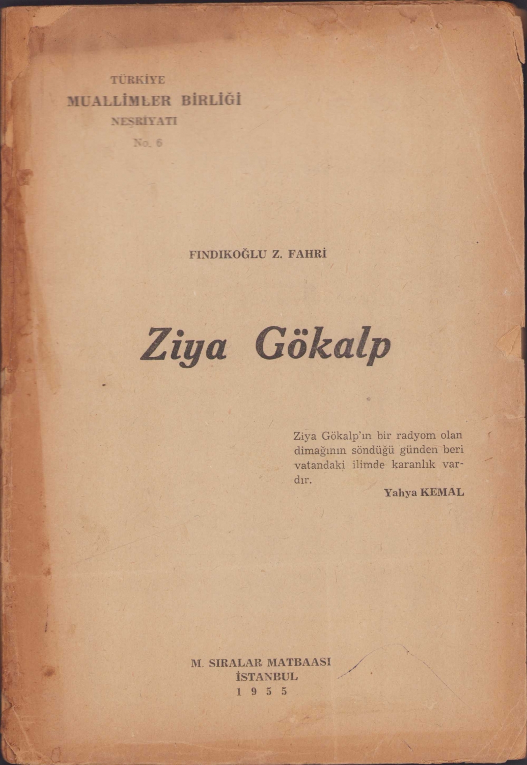 Ziya Gökalp İçin Yazdıklarım ve Söylediklerim, Fındıkoğlu Z. Fahri, İstanbul, 1955, resimli, cilt sırtı haliyle, 16x23 cm 158 sayfa,