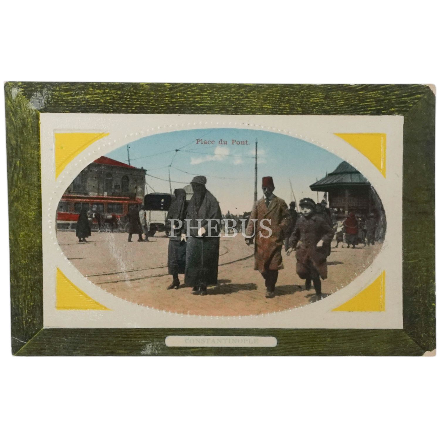 İstanbul - Galata Köprüsü çıkışında sosyal yaşam, "Constantinople - Place du Pont", ed. M.B., 14x9 cm....