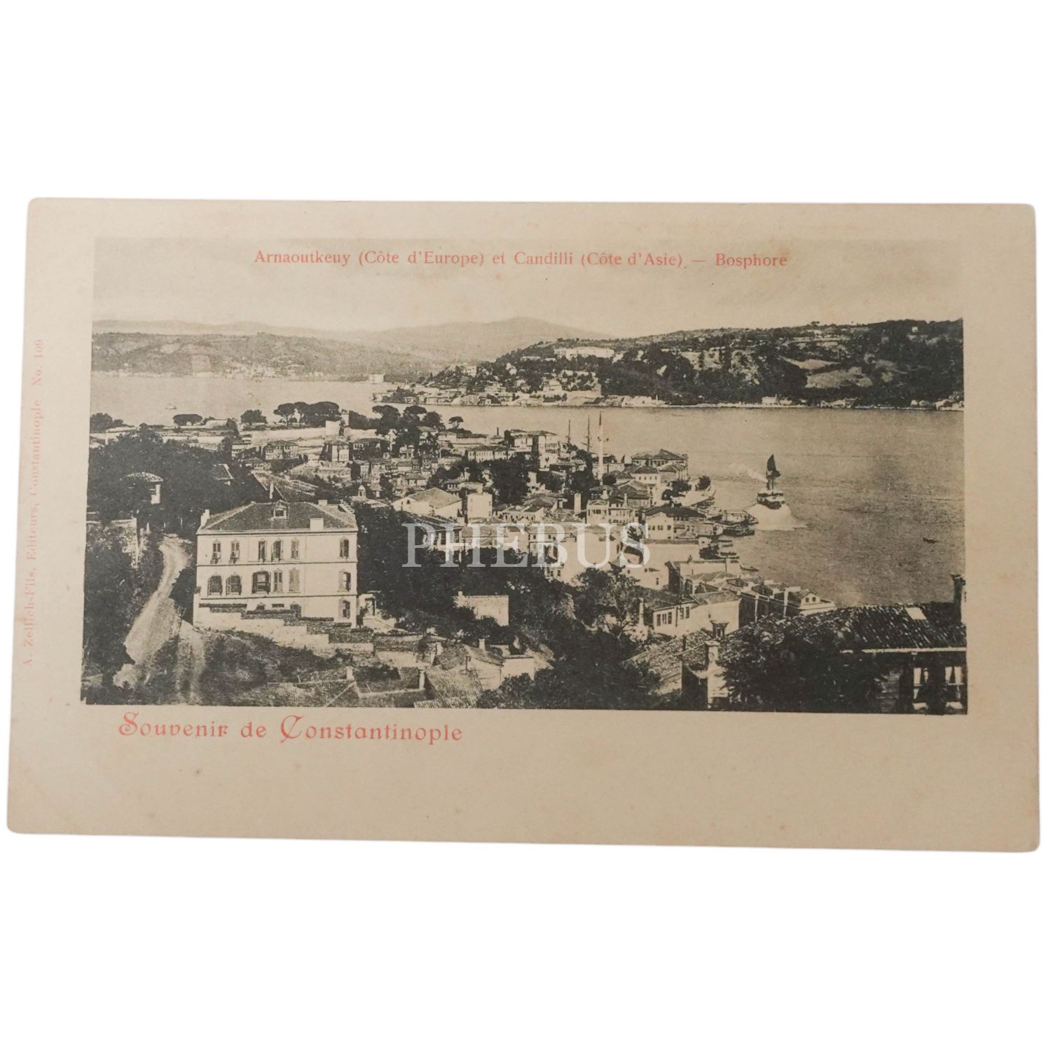 İstanbul, Boğaziçi - Arnavutköy´den Kandilli´ye bakış, "Souvenir de Constantinople - Arnaoutkeuy (Cote d´Europe) et Candilli (Cote d´Asie) - Bosphore", ed. A. Zellich-Fils, Constantinople, 14x9 cm...