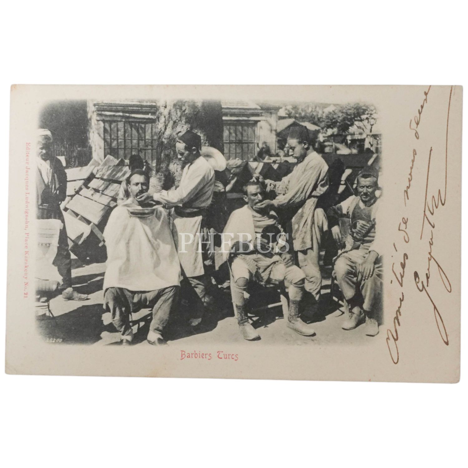 İstanbul - Sokak berberleri, "Berbiers Turcs", Jacques Ludwigsohn, Place Karakeuy, 14x9 cm...