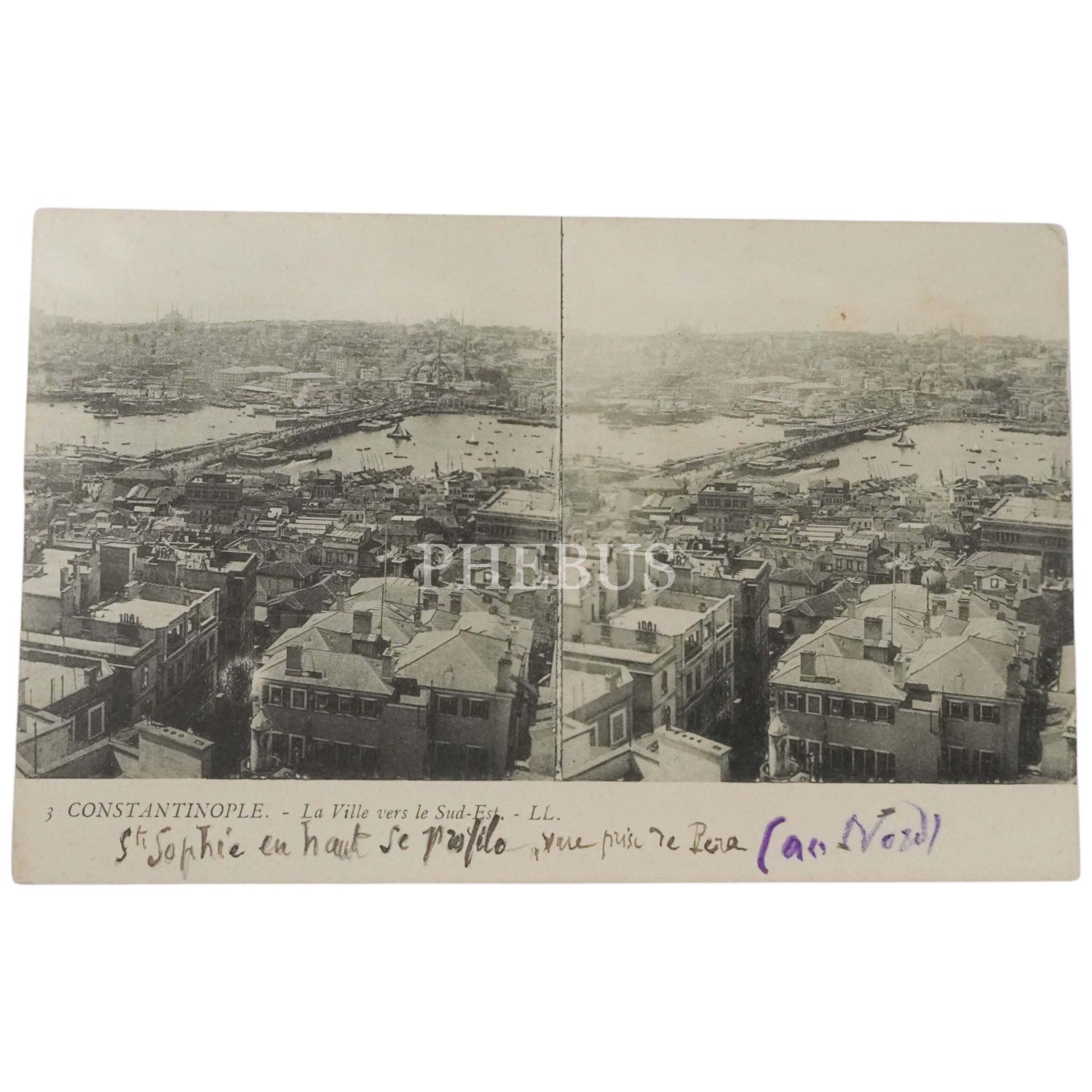 Stereoview kartpostal: İstanbul - Galata Kulesi´nden Galata Köprüsü ve Haliç´e bakış, "Constantinople - La Ville vers le Sud-Est", L´Imprimerie Nouvelle Photographique - Paris, 14x9 cm...