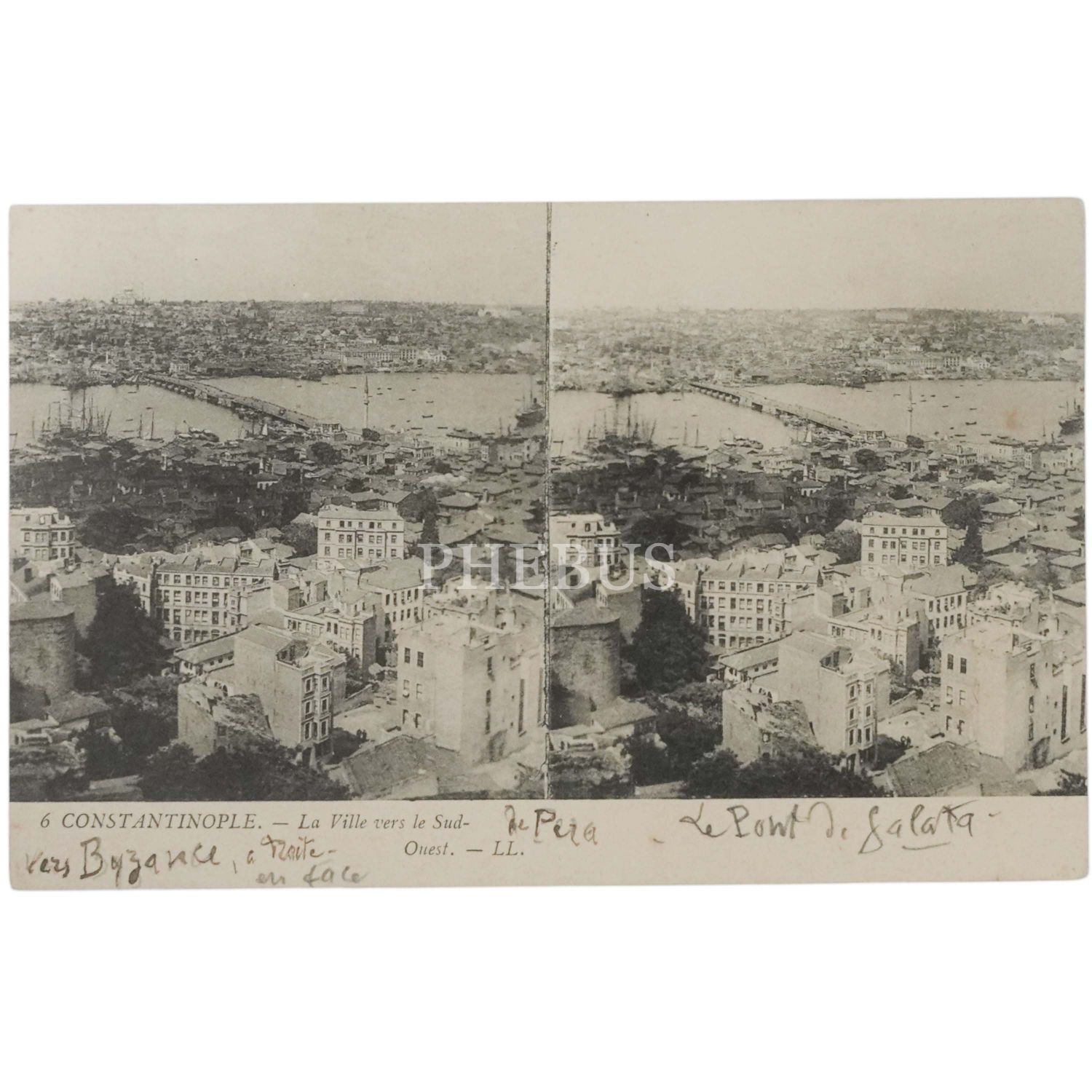 Stereoview kartpostal: İstanbul - Galata Kulesi´nden Unkapanı Köprüsü ve Haliç´e bakış, "Constantinople - La Ville vers le Sud-Quest", L´Imprimerie Nouvelle Photographique - Paris, 14x9 cm...