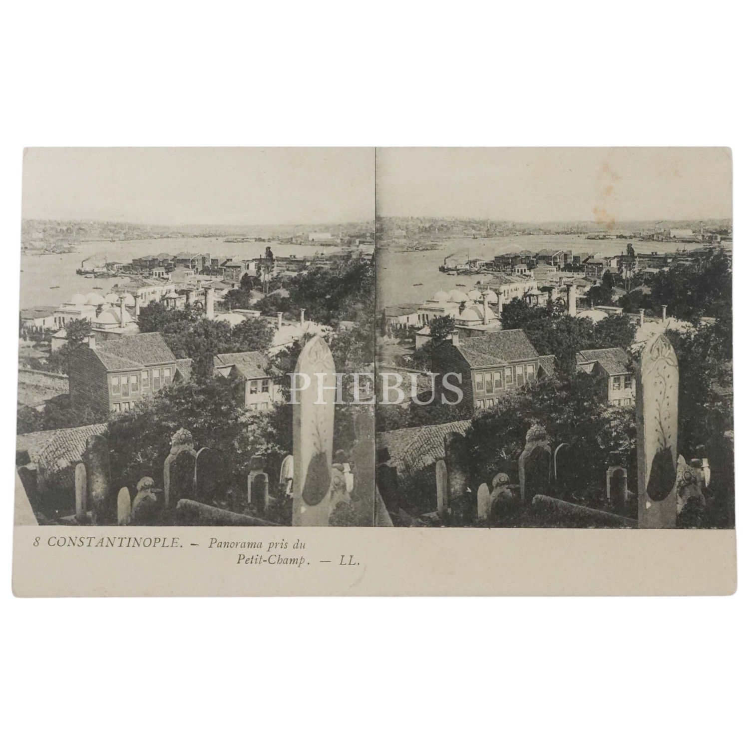 Stereoview kartpostal: İstanbul - Tepebaşı´na panoramik bakış, "Constantinople - Panorama pris du Petit-Champ", L´Imprimerie Nouvelle Photographique - Paris, 14x9 cm...