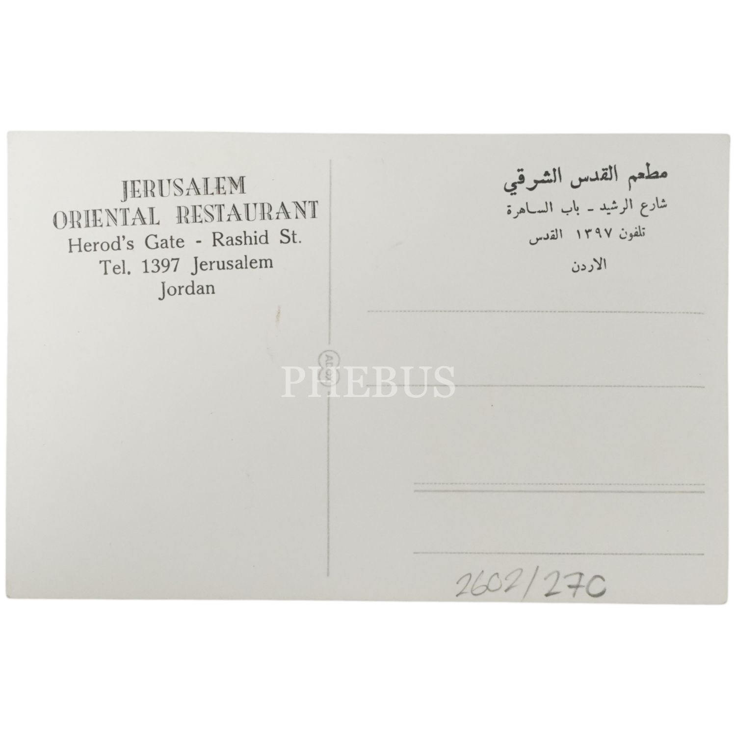 Kudüs´te (Jerusalem) yer alan Oriental Restaurant´ın iç görünümü, arka yüzü Fransızca ve Arapça firma damgalı, 14x9 cm...