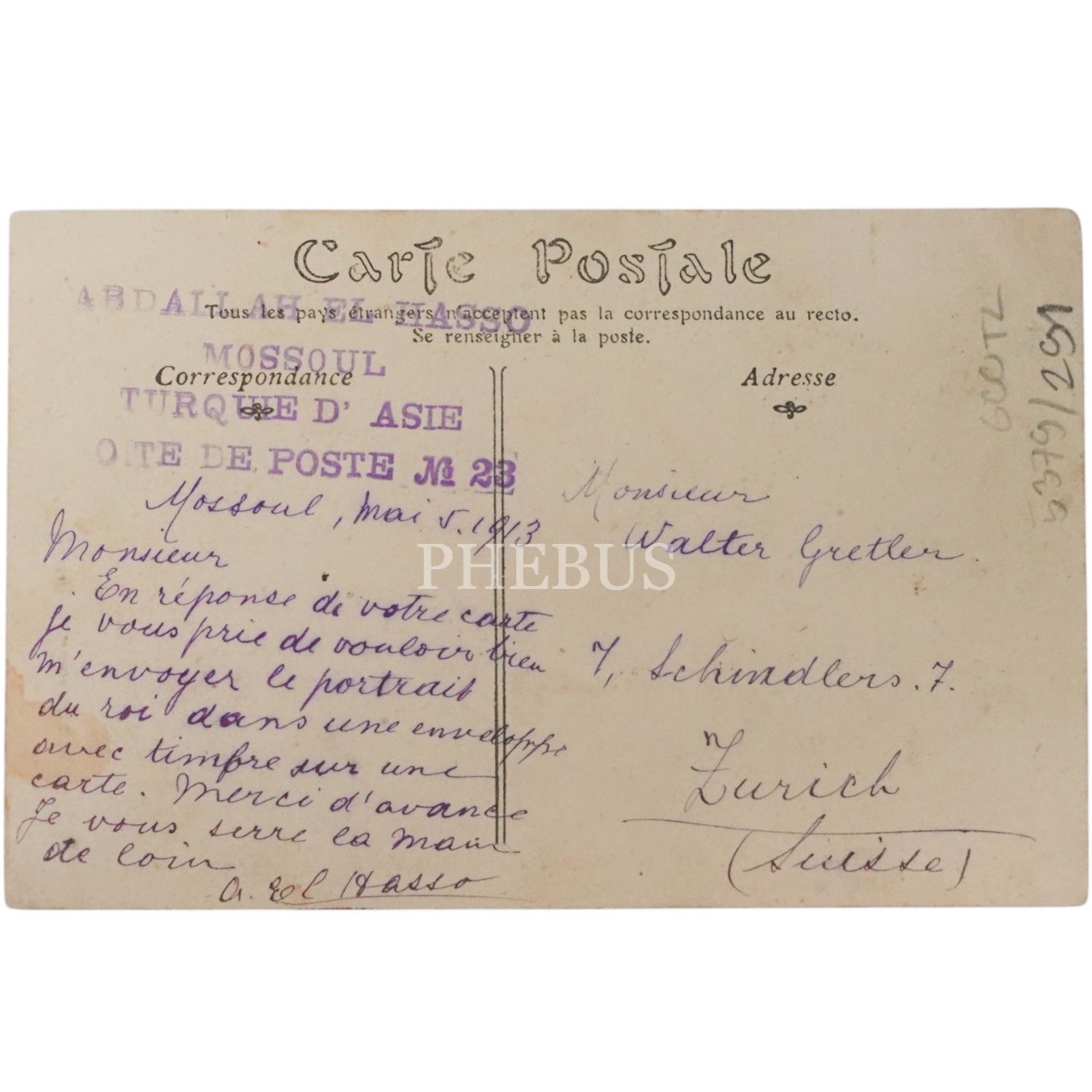 Irak - Musul ve Dicle Nehri, "La Tigre a Mossoul -la- Bossue, postadan geçmiş, arka yüzü "Abdallah El Hasso - Mossoul Turquie d´Asie - Code de Poste", 14x9 cm...