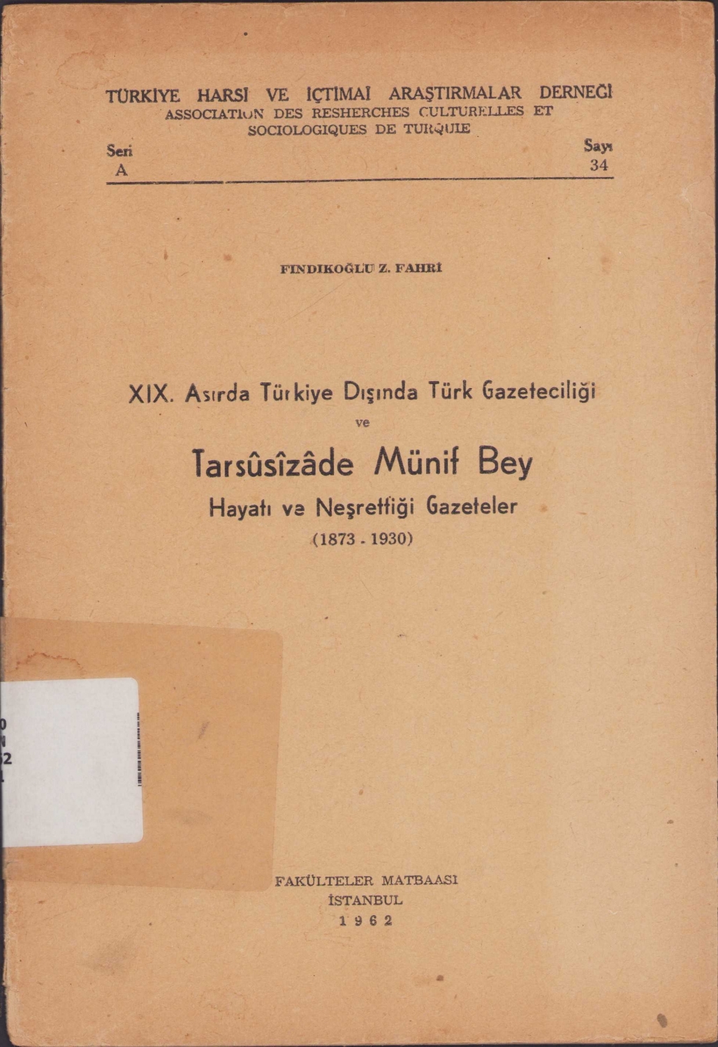XIX. Asırda Türkiye Dışında Türk Gazeteciliği ve Tarsusizade Münif Bey Hayatı ve Neşrettiği Gazeteler (1873 - 1930), 32 sayfa, 16x24 cm