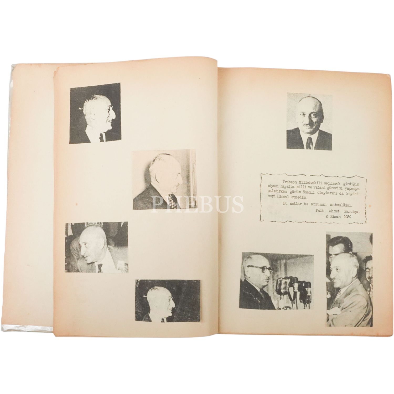 1939 yılında Trabzon Milletvekili olarak TBMM´ye giren siyasetçi Faik Ahmet Barutçu´nun, "Faik Ahmet Barutçu´nun Anıları" başlığıyla bir gazetede yayımlanan anılarının kesilerek kitap haline getirilmiş kupürleri, 17x23 cm...