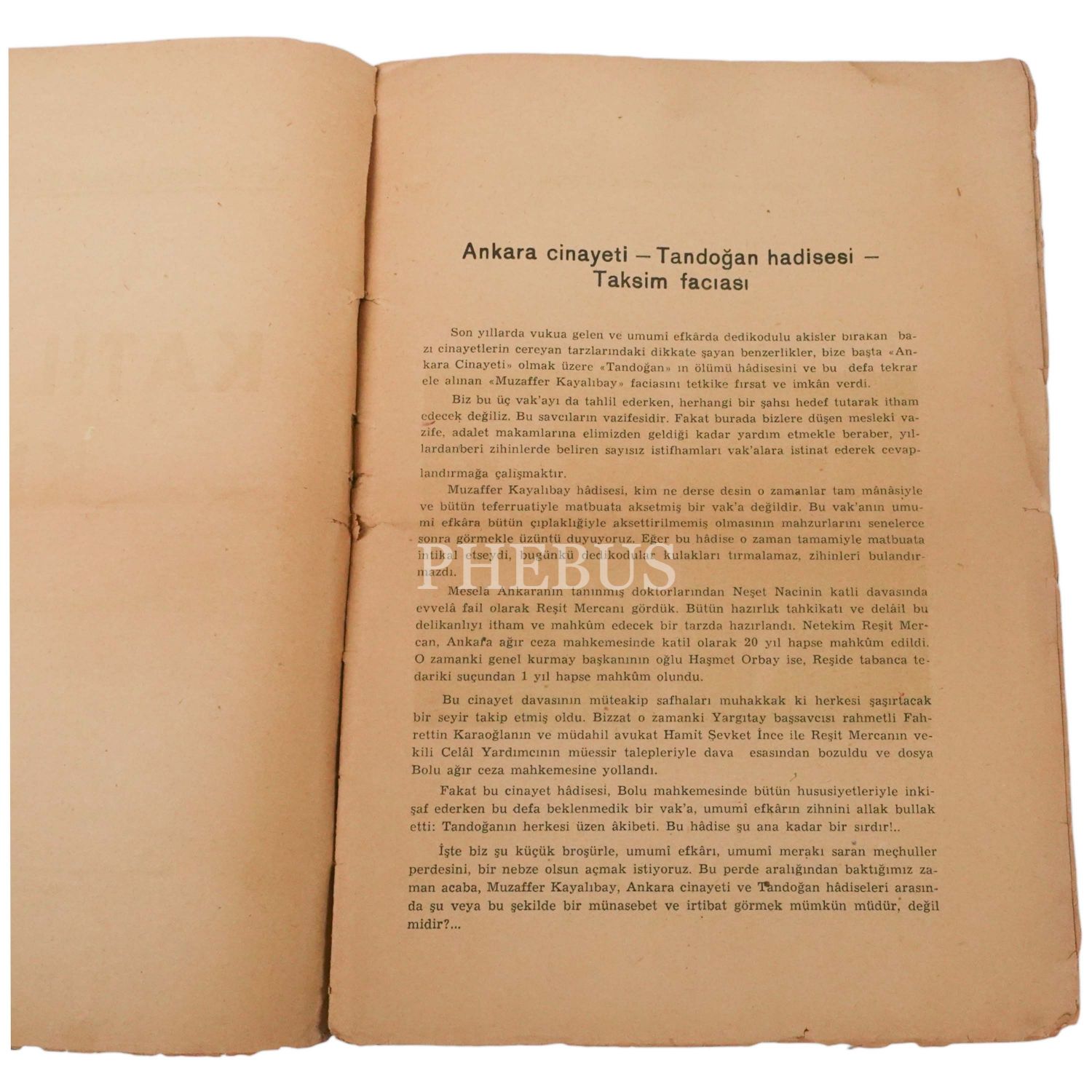 KATİL KİM? (Ankara Cinayeti - Tandoğan Hadisesi - Taksim Faciası), Ferdi Öner - Mehmet Ali Yalçın, 1950, Cumhuriyet Matbaası, 26 sayfa, 18x25 cm...