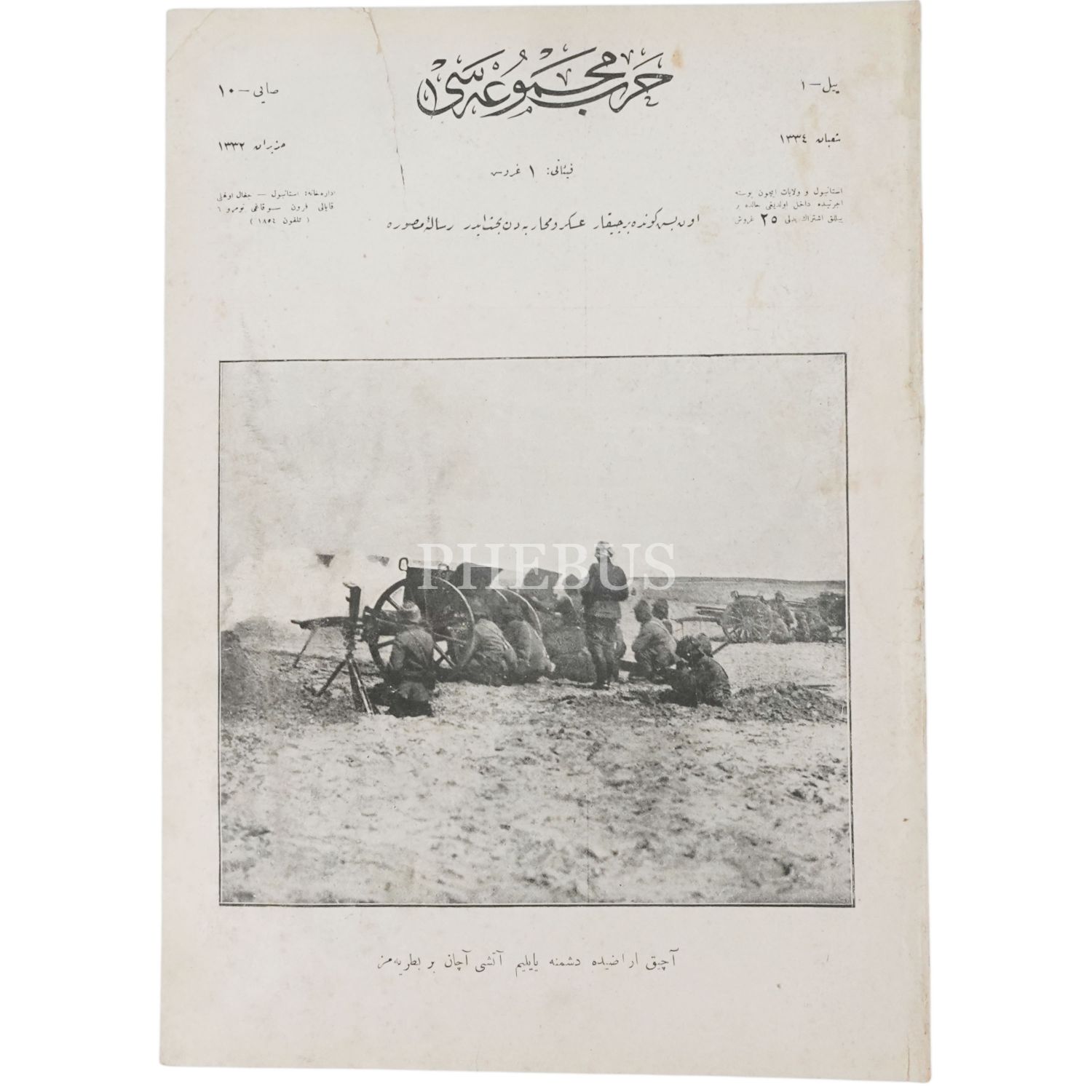 HARB MECMUASI´nın "Açık Arazide Düşmana Yaylım Ateşi Açan Bir Bataryamız" başlıklı 10. sayısı, Şubat 1334, 26x34 cm...