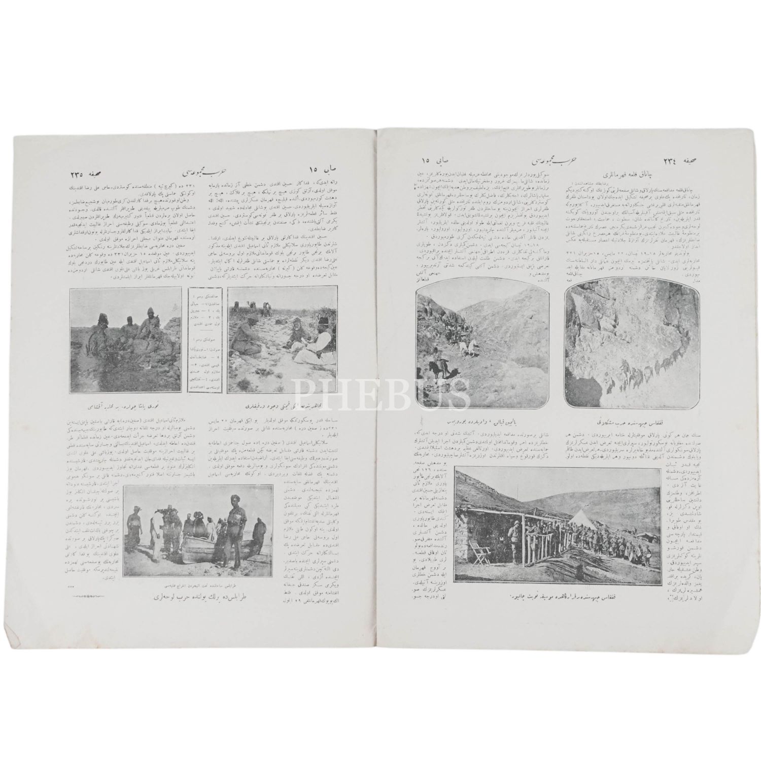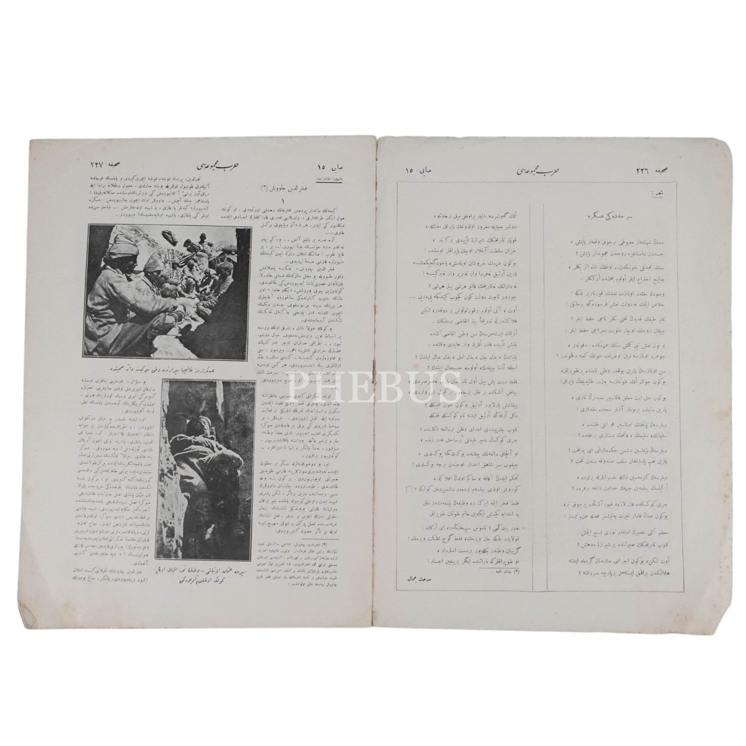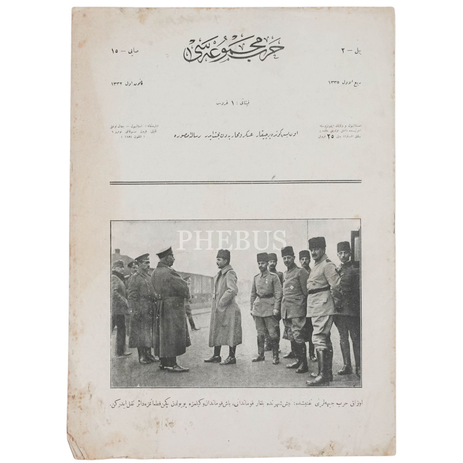 Niş Şehri´nde Bulgar kumandanın Enver Paşa´ya ordunun durumu ile alakalı izahatte bulunurken çekilmiş fotoğrafa kapağında yer veren HARB MECMUASI´nın Kanunuevvel 1332 tarihli 15. sayısı, 23x33 cm...