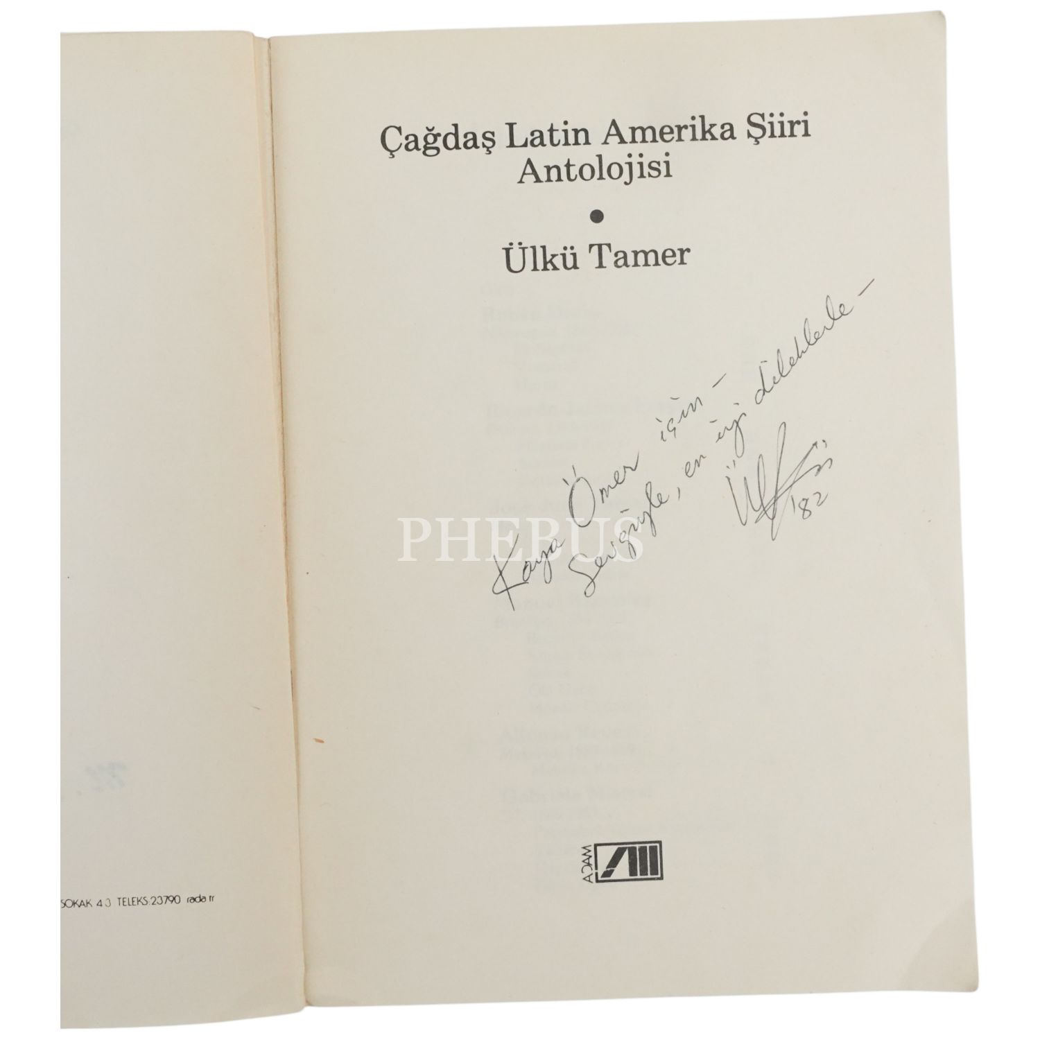 ÇAĞDAŞ LATİN AMERİKA ŞİİRİ ANTOLOJİSİ, Ülkü Tamer, 1982, Adam Yayıncılık, 284 sayfa, 14x20 cm...
