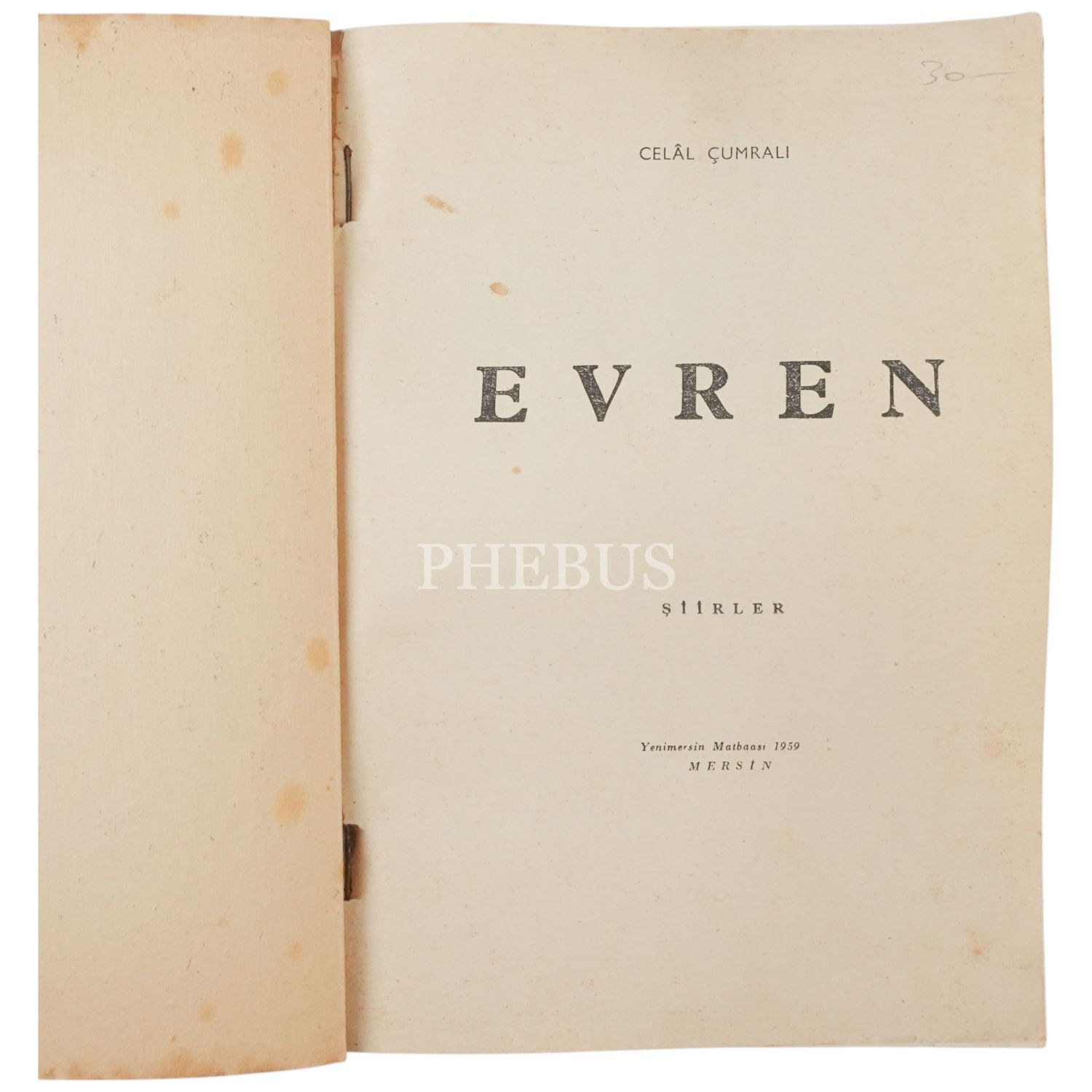 EVREN, Celal Çumralı, 1959, Yenimersin Matbaası (Mersin), 17x24 cm...