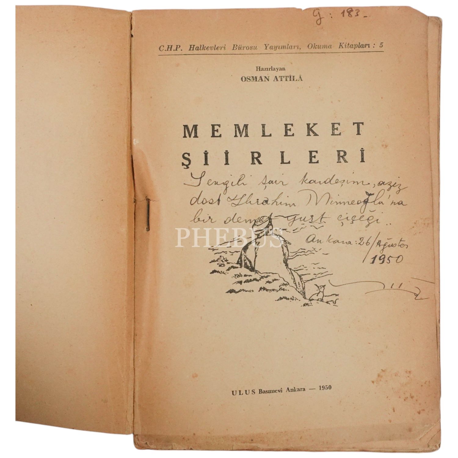 MEMLEKET ŞİİRLERİ, (hazırlayan: Osman Attila), 1950, Ulus Basımevi, 295 sayfa, 15x22 cm...