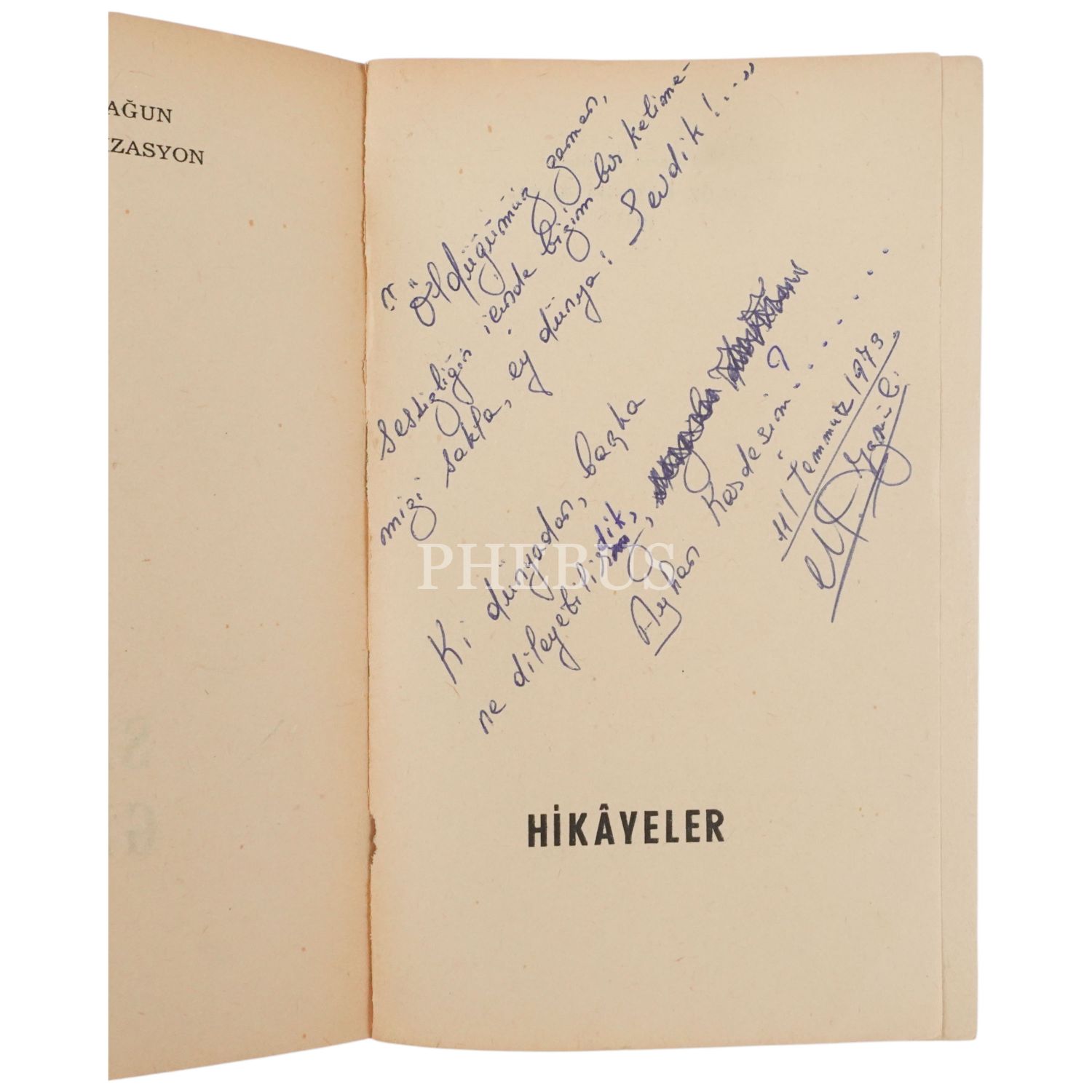 "Öldüğünüz zaman, sessizliğin içinde bizim bir kelimemizi sakla, ey dünya: Sevdik!..." ki dünyadan başka ne dileyebilirdik, Ayhan kardeşim?.." ithafıyla 11 Temmuz 1973 tarihinde imzalanmıştır.