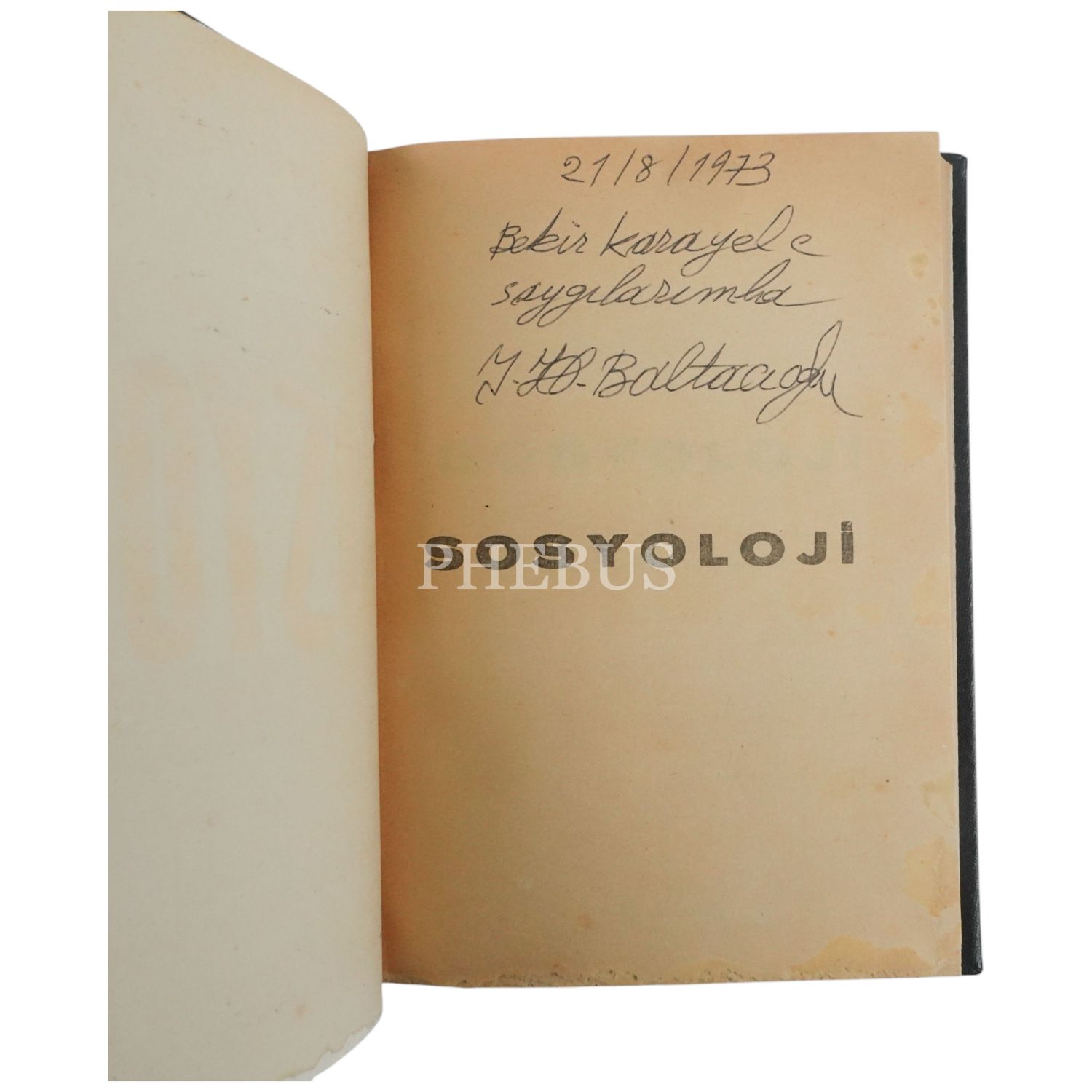 "Bekir Karayel´e saygılarımla." ithafıyla, 21 Ağustos 1973 tarihinde imzalanmıştır. Orijinal kapakları korunarak yakın tarihte ciltlenmiştir. Orijinal ön kapağında yer alan yırtık bantla tamir edilmiştir.