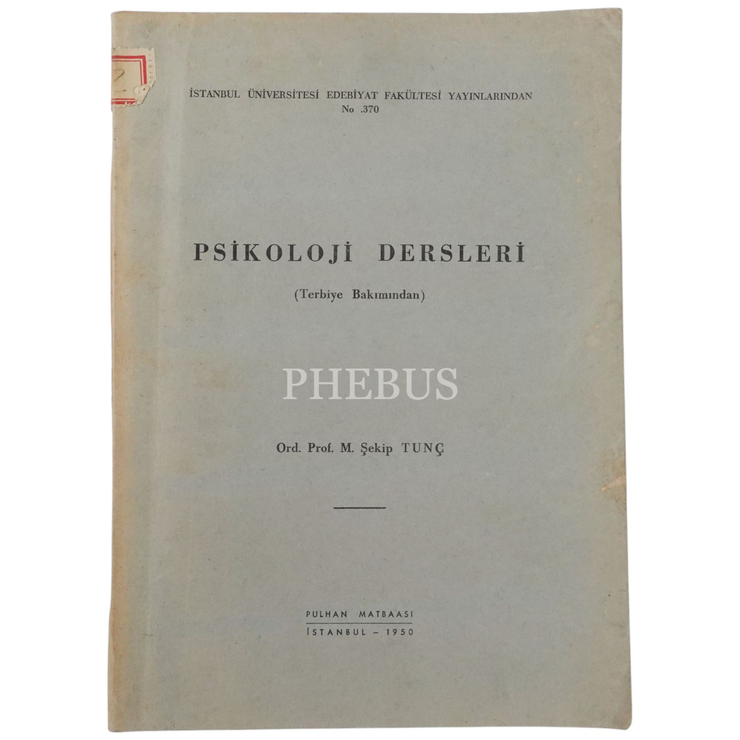 PSİKOLOJİ DERSLERİ (Terbiye Bakımından), M. Şekip Tunç, 1950, İstanbul Üniversitesi Edebiyat Fakültesi Yayınlarından No. 370, 112 sayfa, 17x24 cm...
