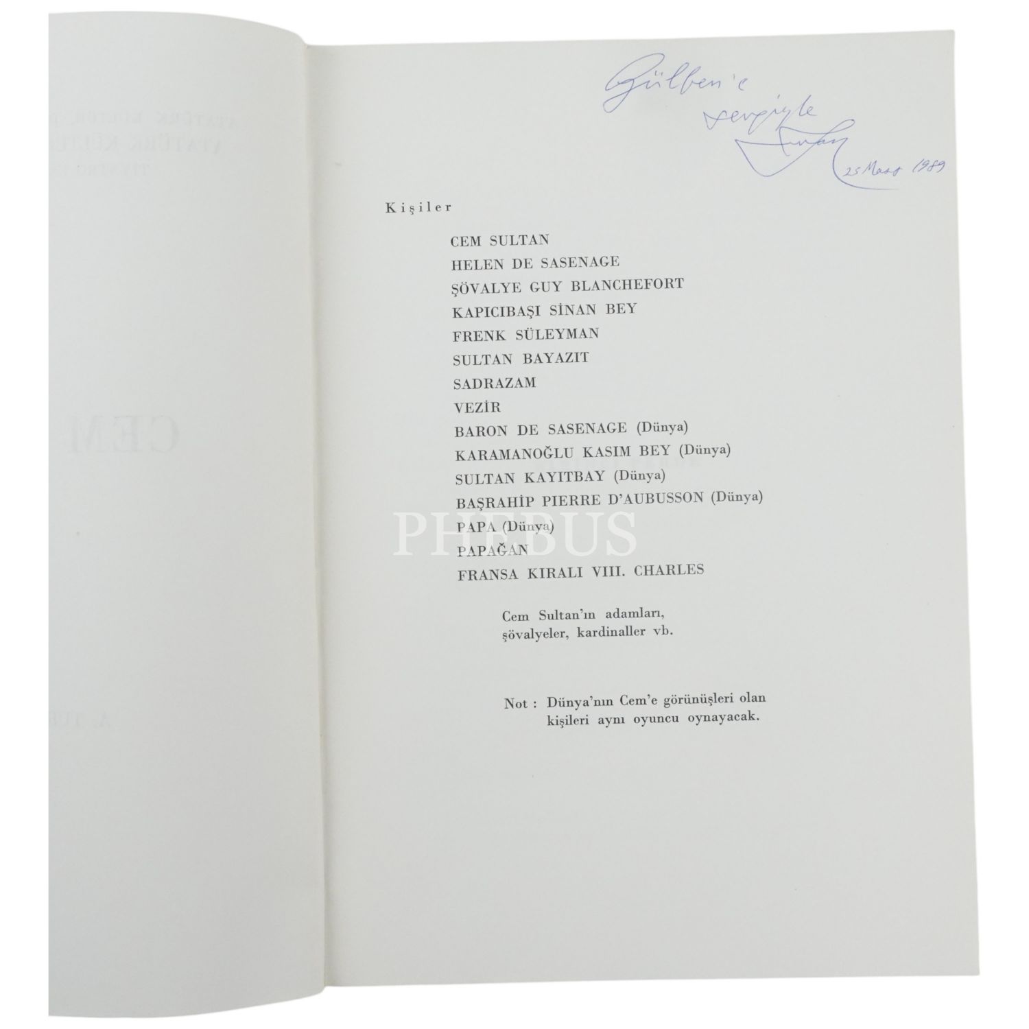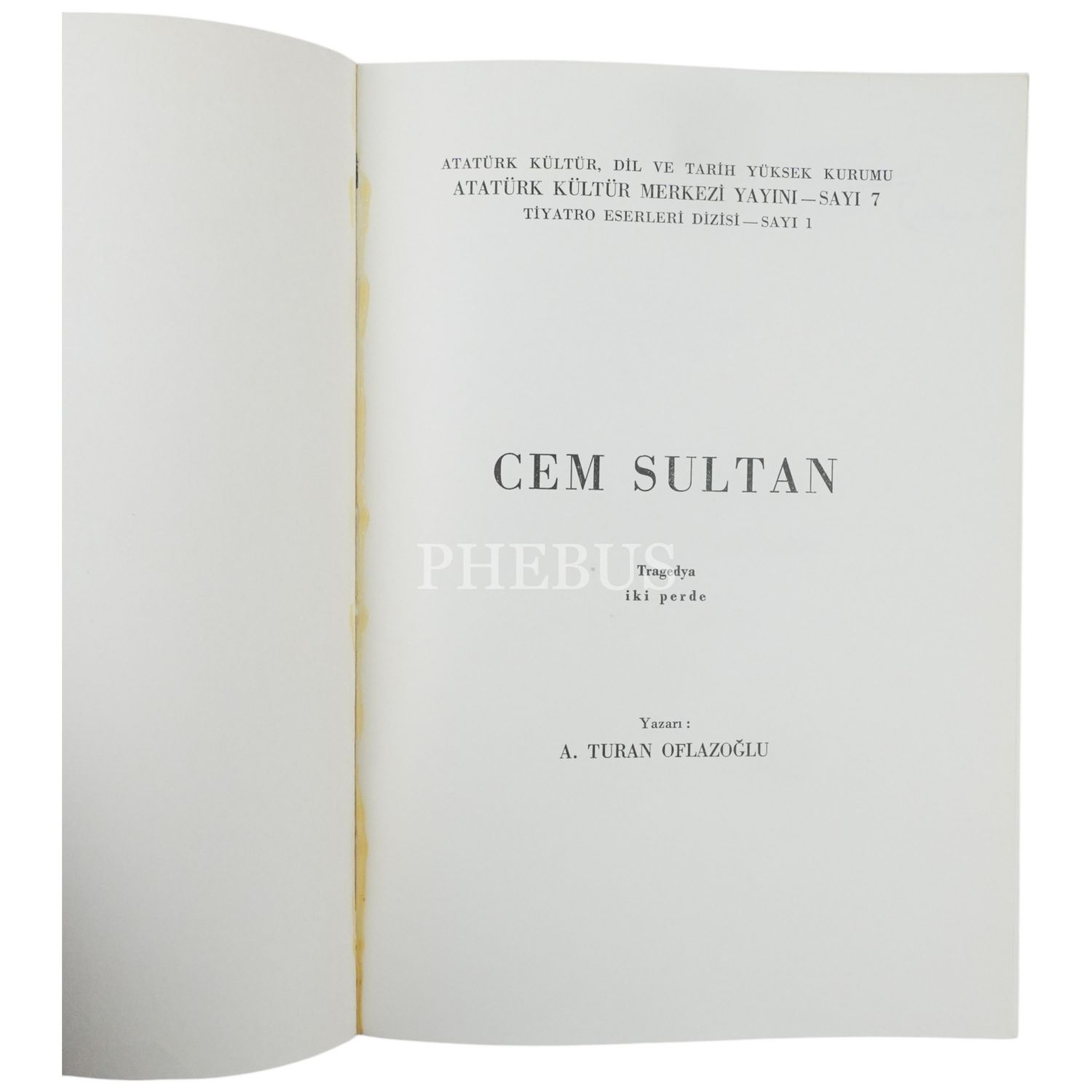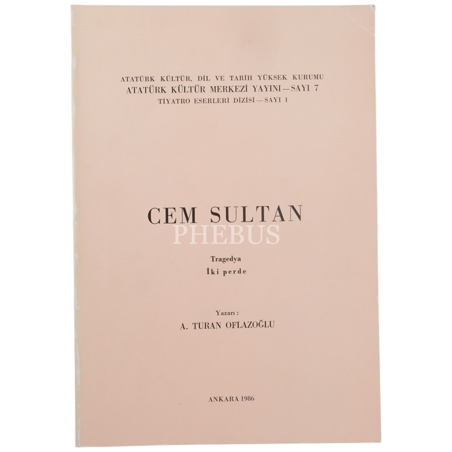 CEM SULTAN (Tragedya - İki Perde), A. Turan Oflazoğlu, 1986, Atatürk Kültür, Dil ve Tarih Yüksek Kurumu Atatürk Kültür Merkezi Yayını - Sayı 7 / Tiyatro Eserleri Dizisi - Sayı 1,
