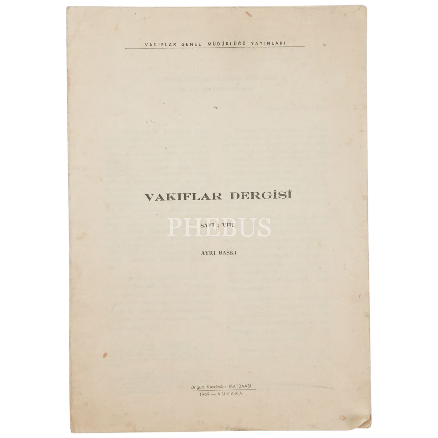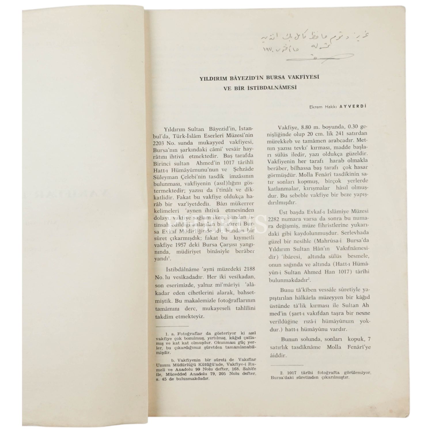 YILDIRIM BAYEZİD´İN BURSA VAKFİYESİ VE BİR İSTİBDALNAMESİ, Ekrem Hakkı Ayverdi, 1969, 46 sayfa, 20x28 cm...