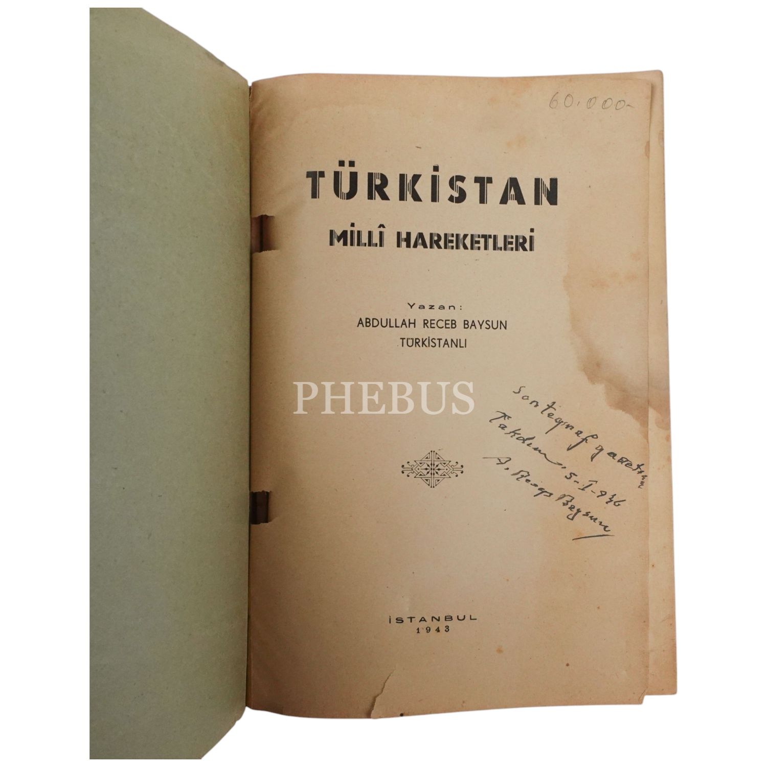 TÜRKİSTAN MİLLÎ HAREKETLERİ, Abdullah Receb Baysun, 1945, Alaeddin Klişe Fabrika ve Matbaası, 201 sayfa, 16x23 cm...