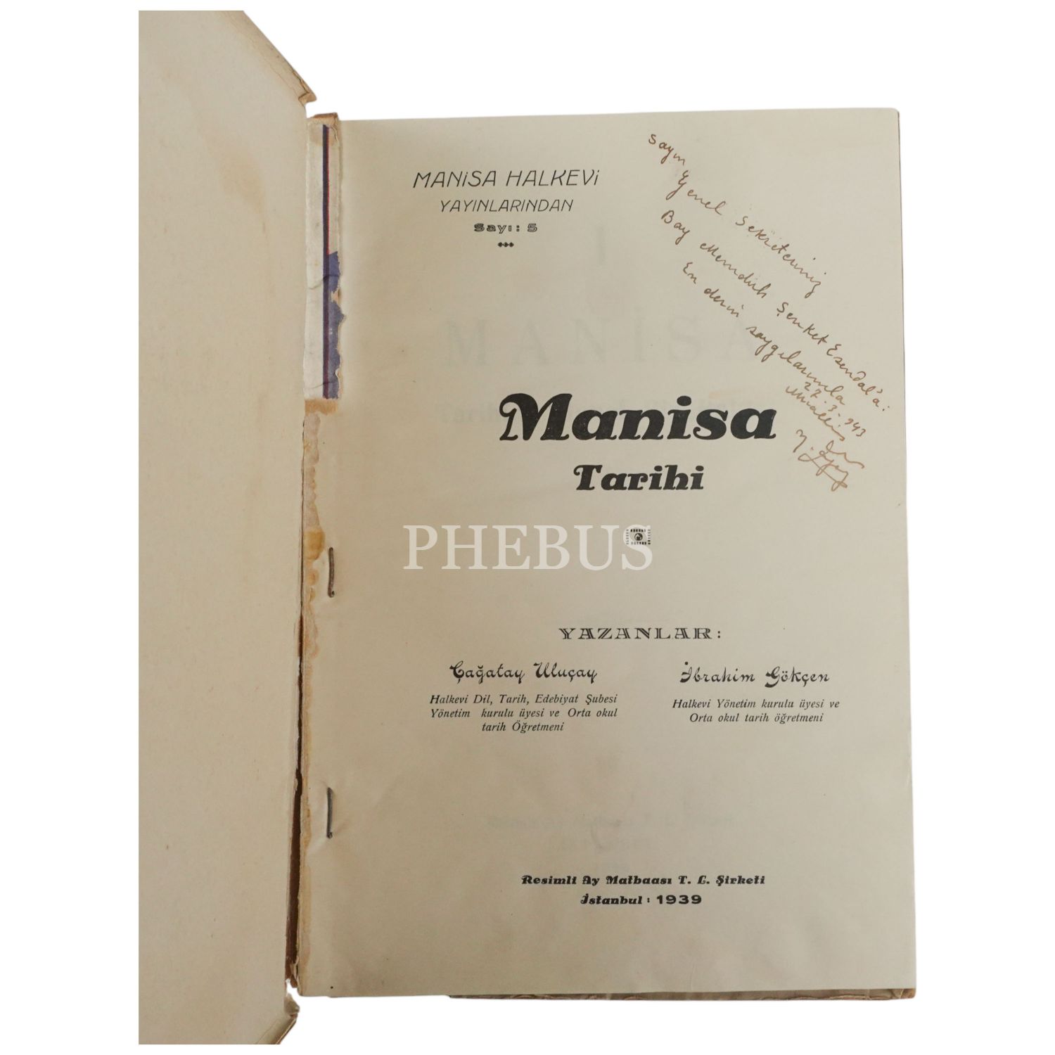 MANİSA TARİHİ, (yazanlar: Çağatay Uluçay - İbrahim Gökçen), 1939, Manisa Halkevi Yayınlarından (Sayı: 5), 126 sayfa metin + görsel ve levhalar, 17x24 cm...