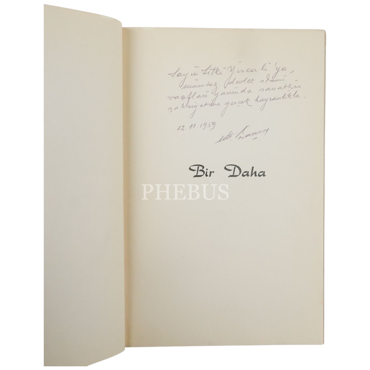 "Sayın Sıtkı Yırcalı´ya, mümtaz devlet adamı vasıfları yanında sanatkâr şahsiyetine gerçek hayranlıkla." ithafıyla, 12 Kasım 1959 tarihinde imzalanmıştır.