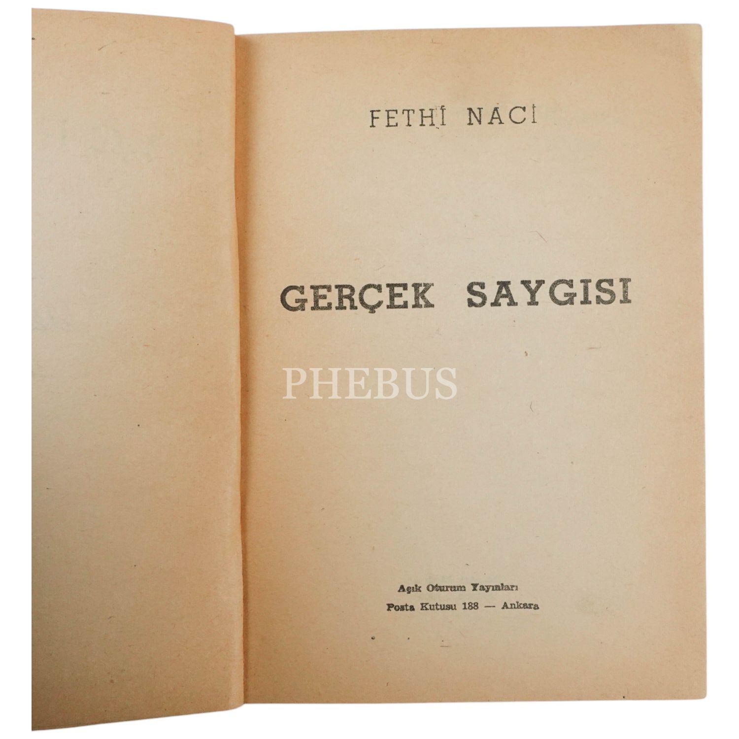 GERÇEK SAYGISI, Fethi Naci, 1959, Açık Oturum Yayınları, 54 sayfa, 14x20 cm...