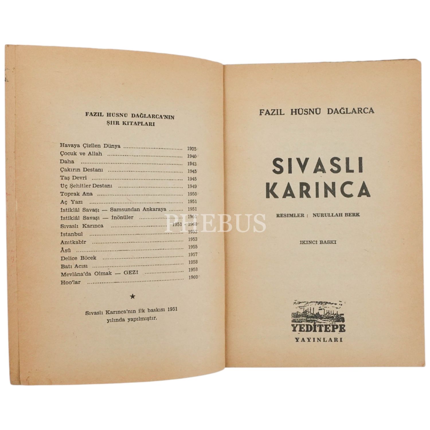 SİVASLI KARINCA, Fazıl Hüsnü Dağlarca, 1960, Yeditepe Yayınları, 46 sayfa, 14x20 cm...