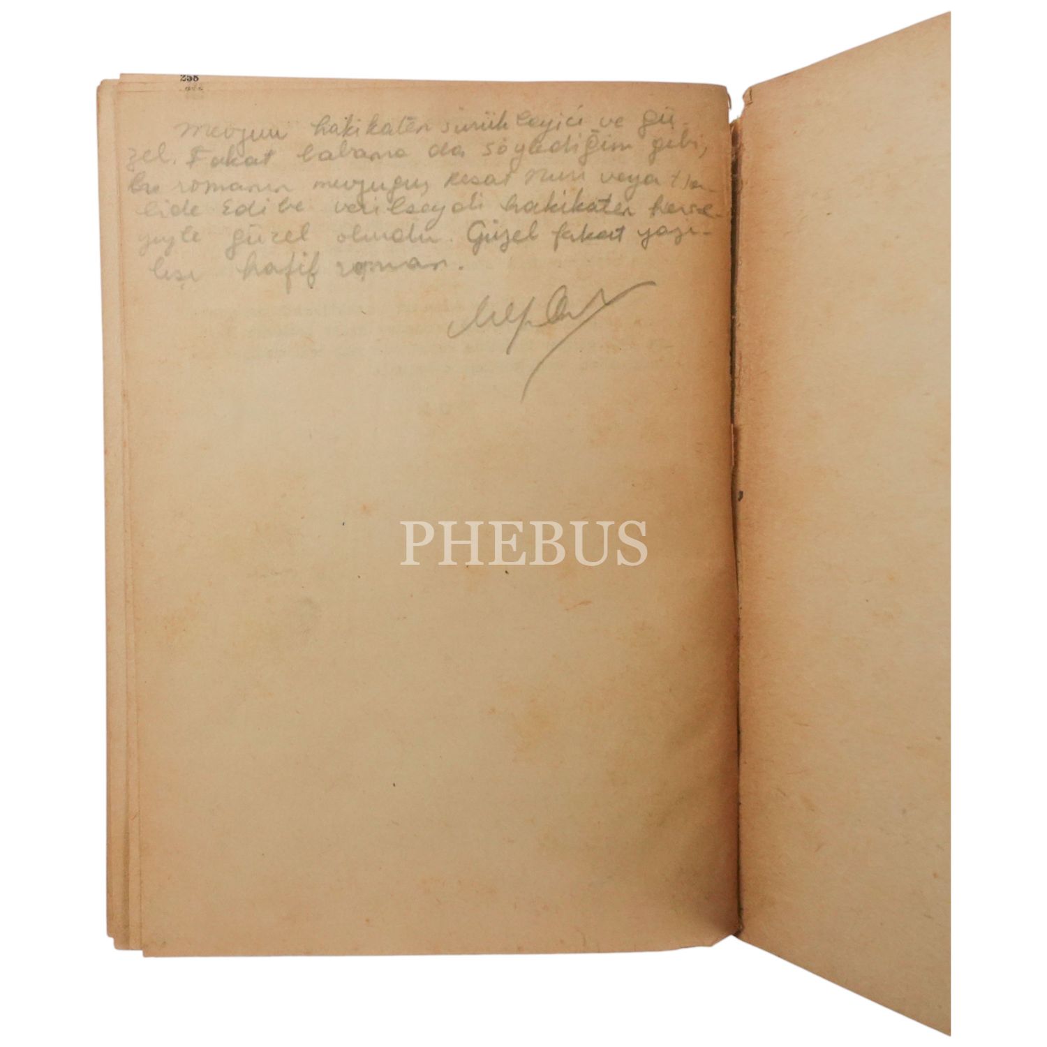 "Halasının eserlerine ilgi ve sevgi gösteren kıymetli ... Nefser(?)´ya, en iyi dileklerimle." ithafıyla, 7 Mart 1959 tarihinde imzalanmıştır. Kitabın sonunda, yeğeni tarafından kaleme alınmış eleştirel bir not mevcuttur.