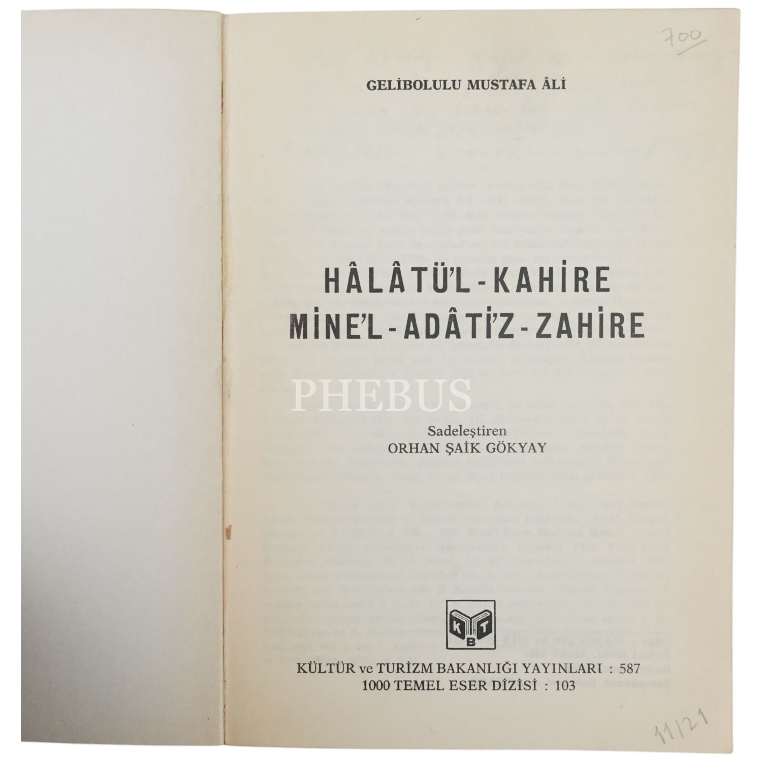HÂLATÜ´L-KAHİRE MİNE´L-ADATİ´Z-ZAHİRE, Gelibolulu Mustafa Ali, (sadeleştiren: Orhan Şaik Gökyay), 1984, Kültür ve Turizm Bakanlığı Yayınları, 158 sayfa, 14x20 cm...