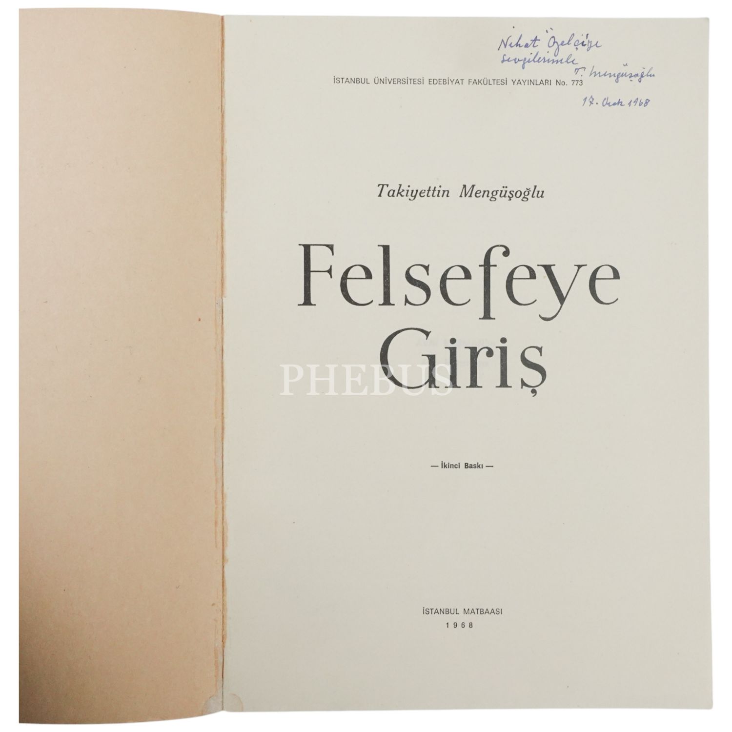 FELSEFEYE GİRİŞ, Takiyettin Mengüşoğlu, 1968, İstanbul Üniversitesi Edebiyat Fakültesi Yayınları No. 773, 326 sayfa, 17x24 cm...