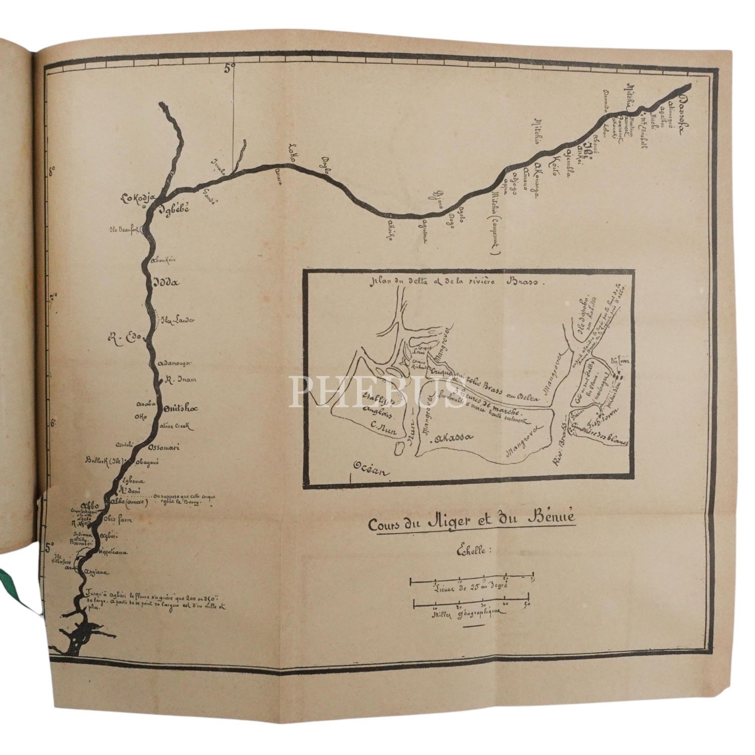 Yayınevinin Afrika Keşifleri serisinden Aşağı Nijer´e dair kapsamlı bilgiler içeren bir kitap... İçinde biri katlanır 6 gravür ve 2 katlanır harita yer almaktadır. İç ve dış kapakları ebrulu, sırtı panelli ve altın yaldız dekorlu deri dönem cildinde.