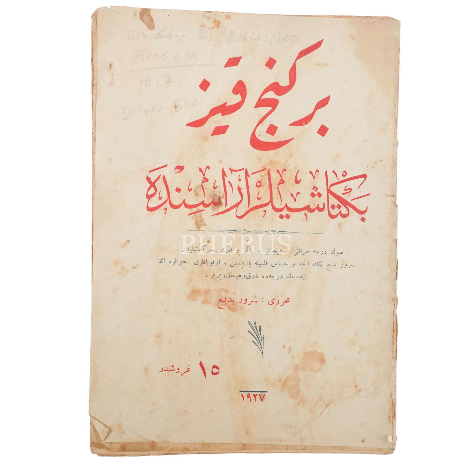 BİR GENÇ KIZ BEKTAŞİLER ARASINDA, Server Bedi (Peyami Safa), 1927, Amedi Matbaası, 48 sayfa, 14x21 cm...