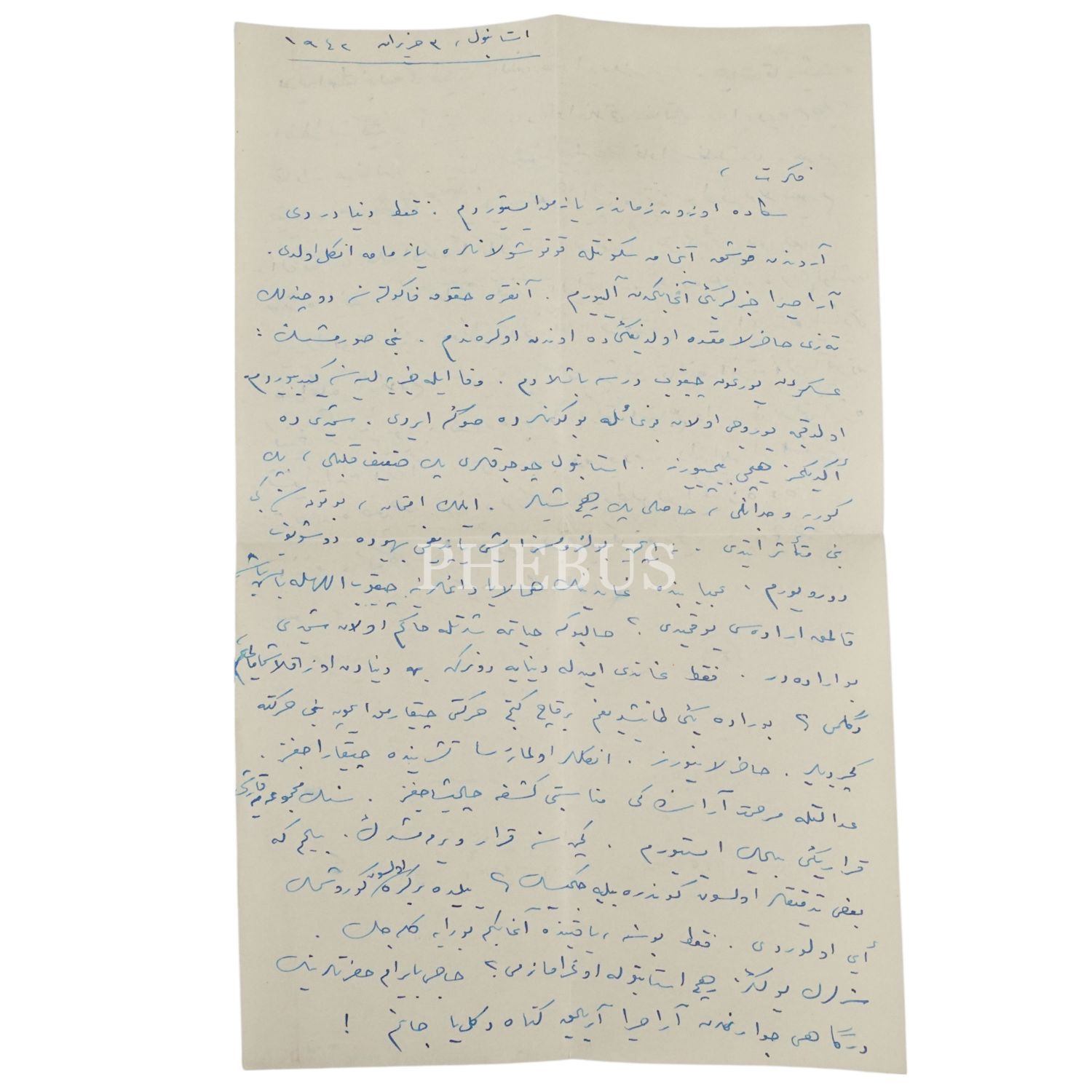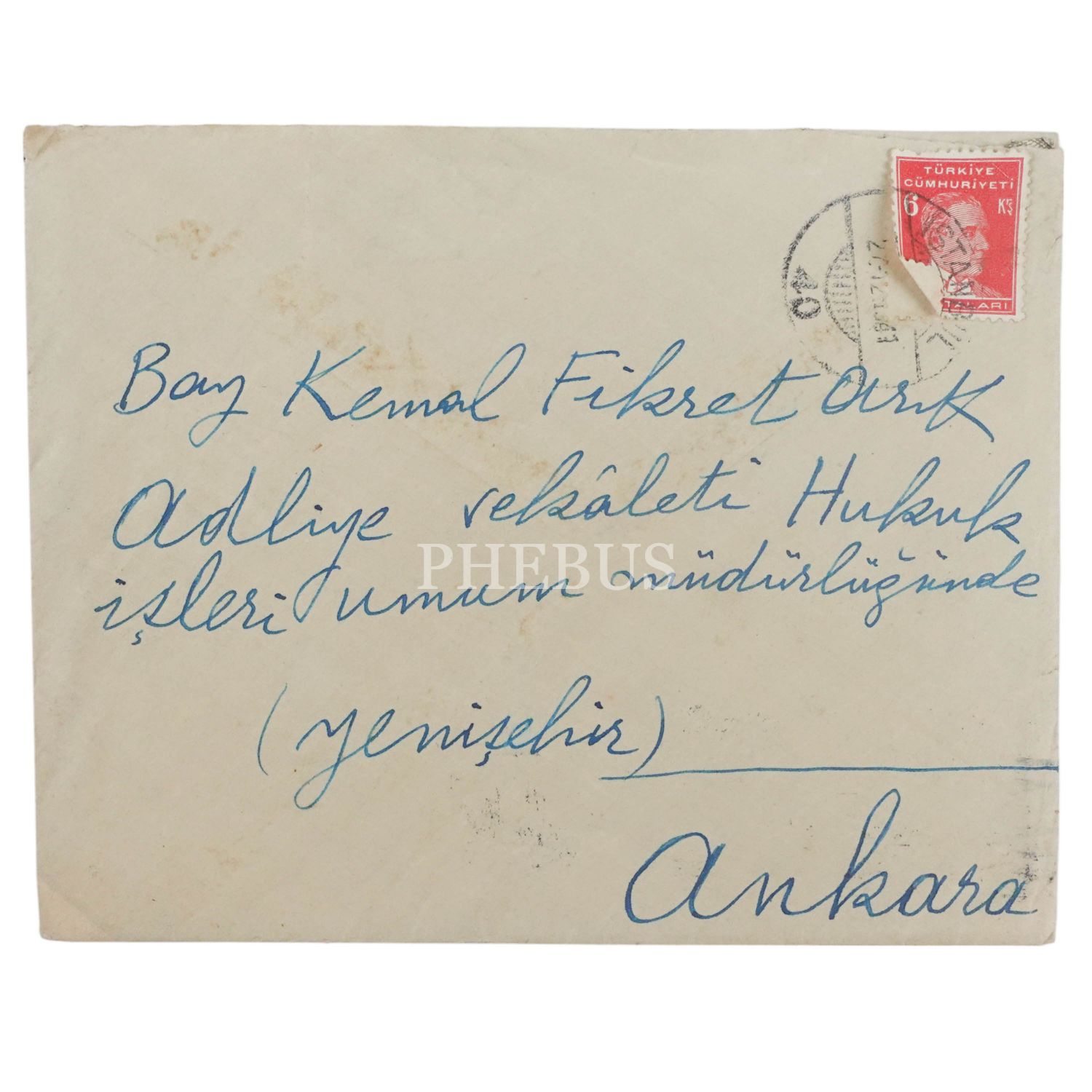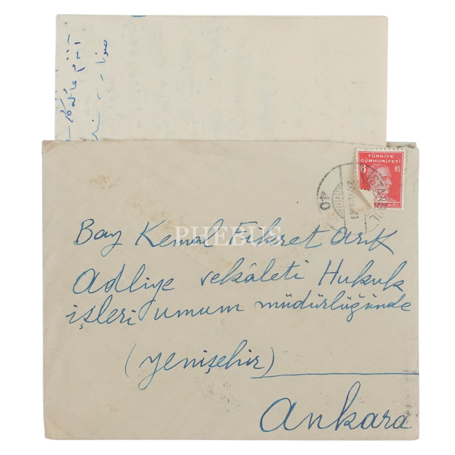 Muhafazakâr Türk entelijansiyasının en önemli isimlerinden Nurettin Topçu'nun, Vefa Lisesi'nde felsefe öğretmeni olduğu sıralarda, arkadaşı Profesör kemal Fikret Arık'a yazdığı mektup... Zarfıyla birlikte...