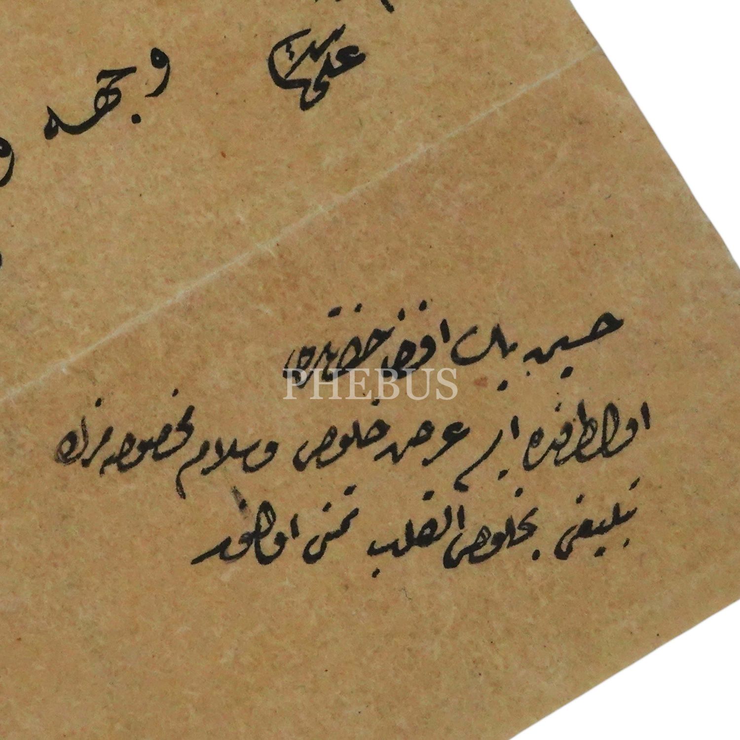 Alttaki not: "Hüseyin Bey Efendi Hazretleri ol tarafta ise arz-ı hulus ve selam-ı mahsusamızın tebliği bi-hulus-i kalp temenni olunur."