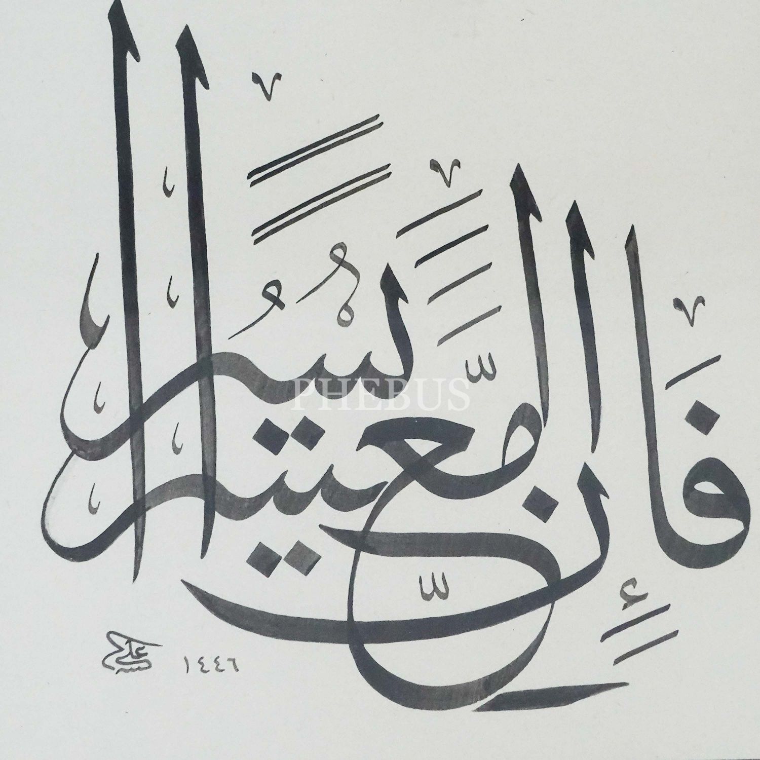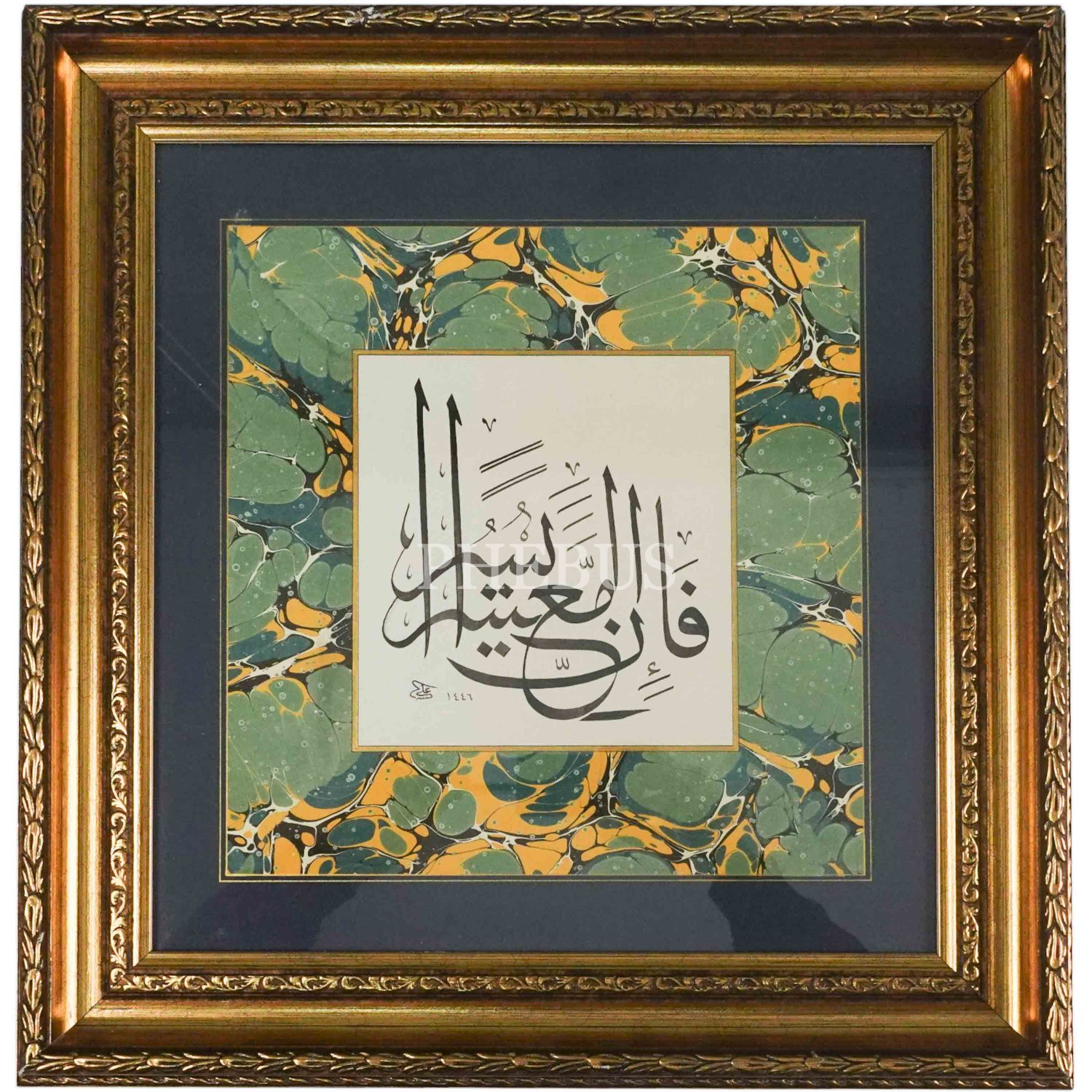 Yazı: "Feinne mea´l-usri yüsrâ" Manası: Muhakkak ki her zorlukla beraber bir kolaylık vardır. (İnşiraf Suresi 6. ayet)