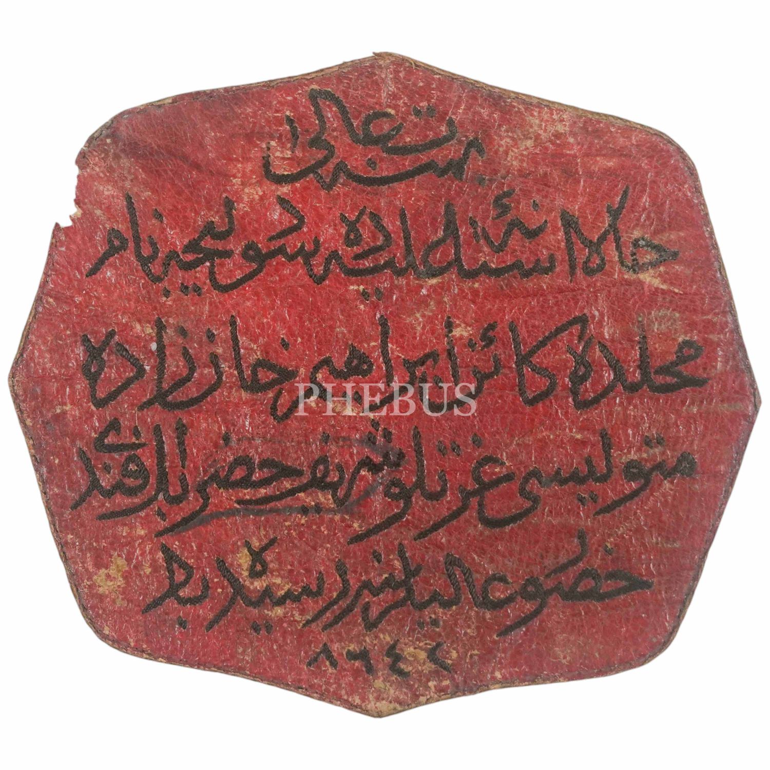 Feraşet çantası yazısı, deri üzeri dokuma, 17 cm...