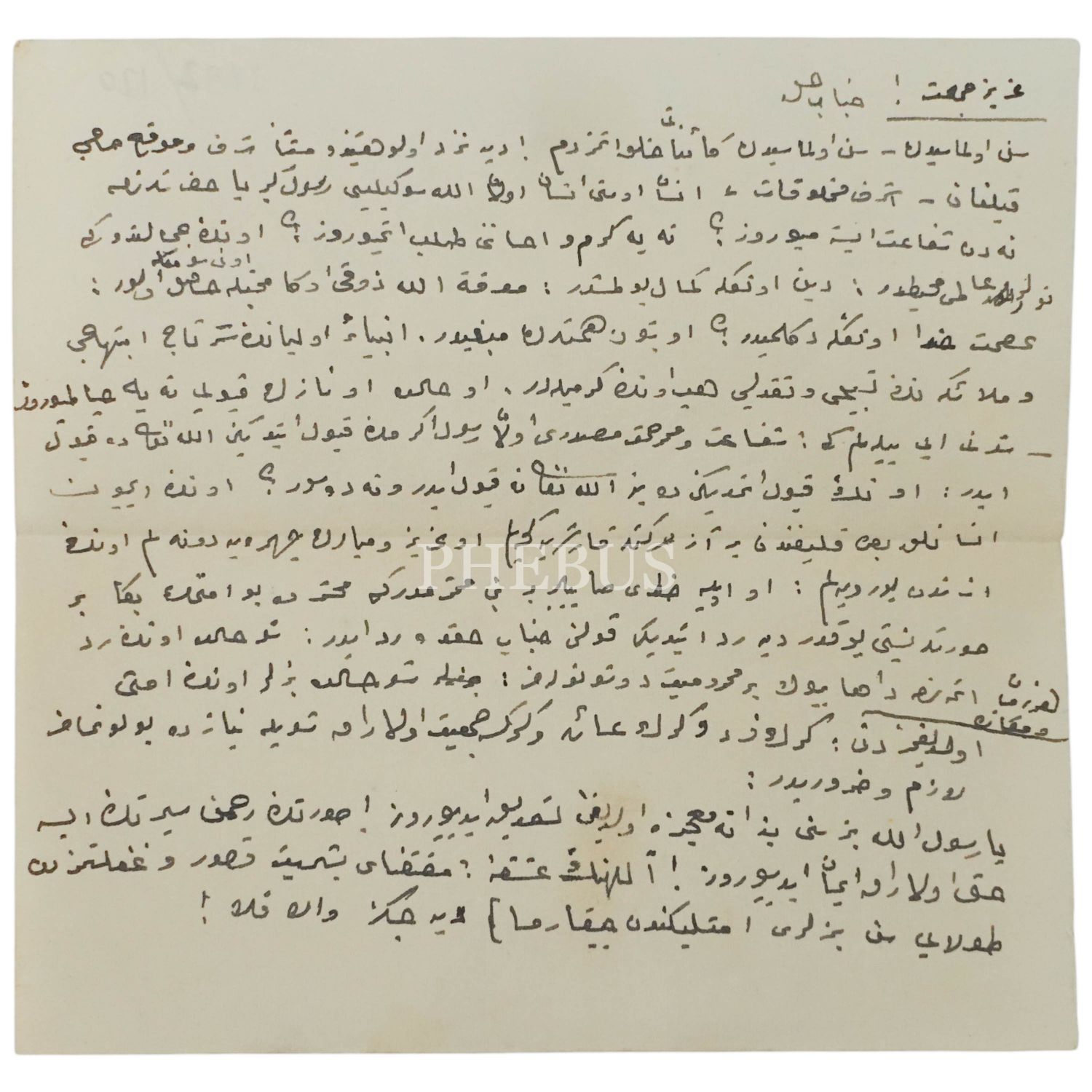 Osmanlı dönemi bir imamın el yazısıyla hazırladığı hutbe metni, konusu: Hz. Peygamber´in faziletleri, 15x15 cm...