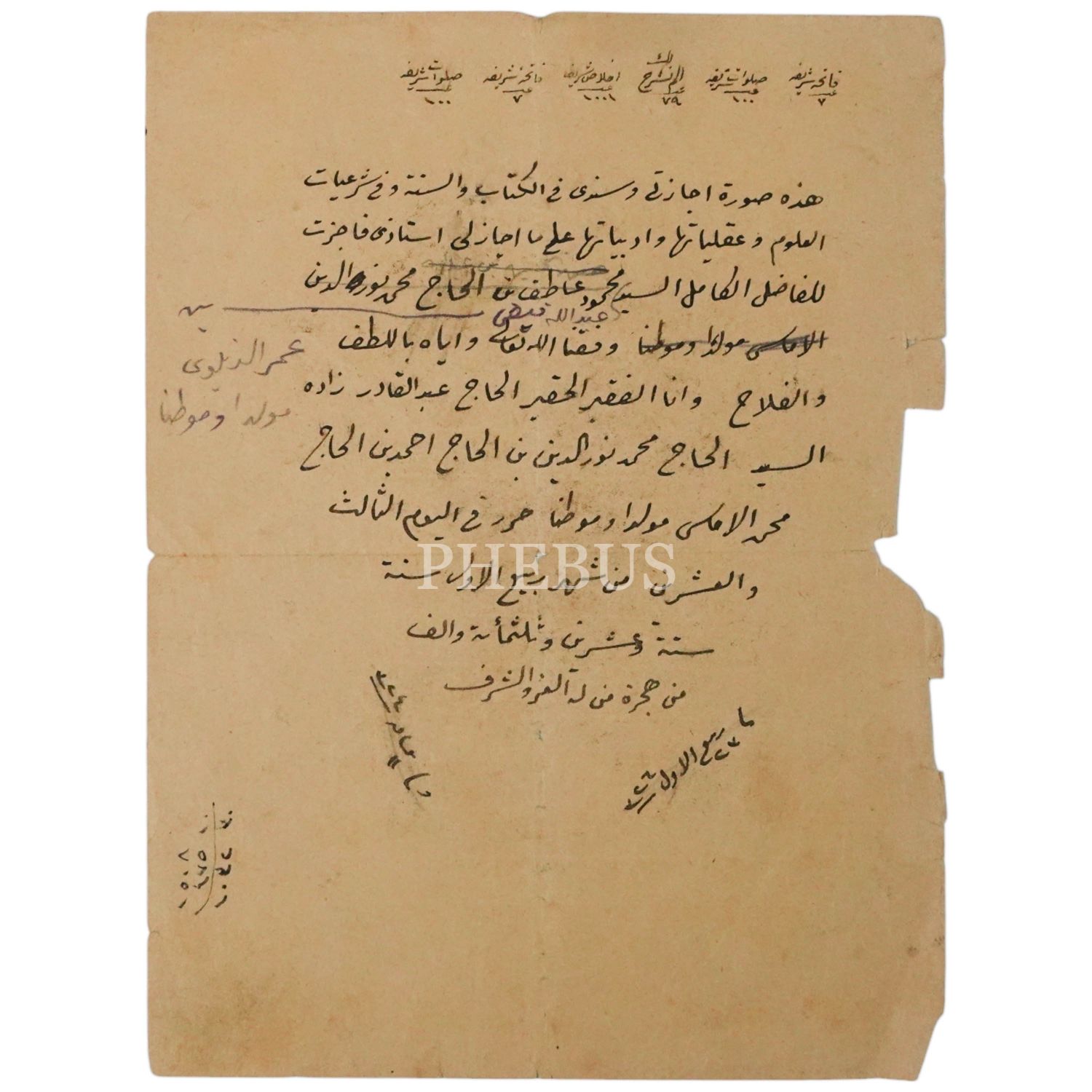1320 tarihli bir ilmiye icazetnamesinin sureti, 20x15 cm...